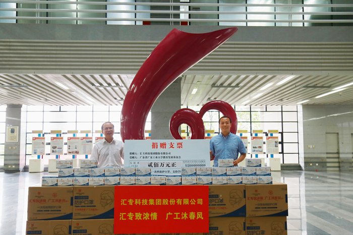 为了支持广工师生返校后做好疫情防护,汇专科技与双方共建的汇专-广工大超声制造工程技术研究中心4月份就决定,出资人民币200万元,协助购买了符合国家标准的一次性使用防护口罩150万只,捐赠用于广工师生返校后的疫情防护,为师生送去了浓浓的关爱。广工的全日制学生和教工共有47000多人,如果按每人每天2只口罩计算,本次捐赠口罩足够用2周以上。该次口罩捐赠分三批进行:第一批35万只口罩4月20日送达、第二批45万只5月7日送达,第三批70万只于5月16日送达。
