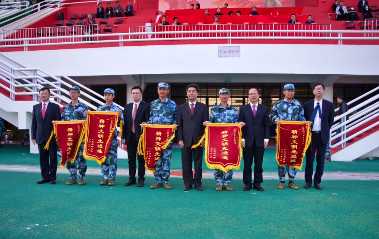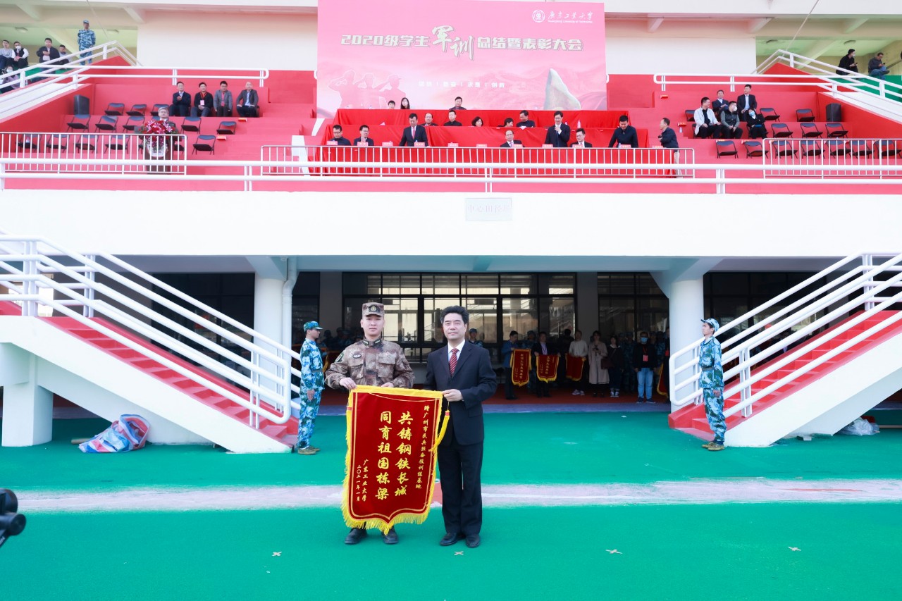 图 | 学校党委书记胡钦太向承训单位广州市民兵预备役训练基地赠送锦旗