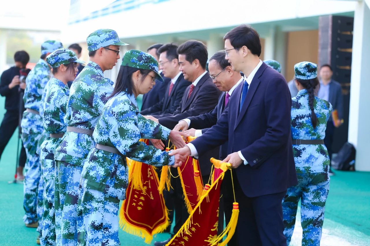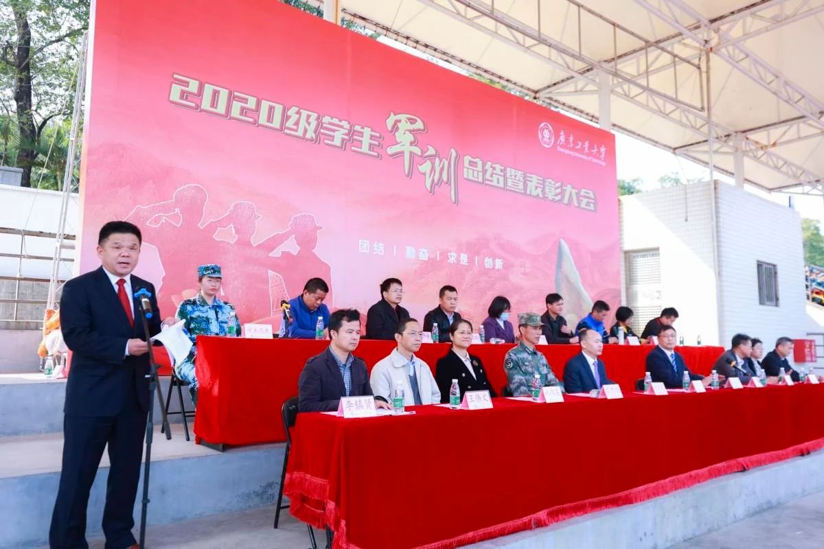 校长邱学青和副校长杜承铭分别在大学城校区和龙洞校区作军训总结讲话。邱学青表示,感谢承训教官以身作则、率先垂范、严格施训。他说,14天军训里,每一个响亮口号、每一次昂首阔步,都见证着同学们的成长与蜕变。他希望同学们砥砺奋斗精神,锤炼过硬本领;坚定理想信念,厚植家国情怀;牢记时代使命,争做时代新人。
