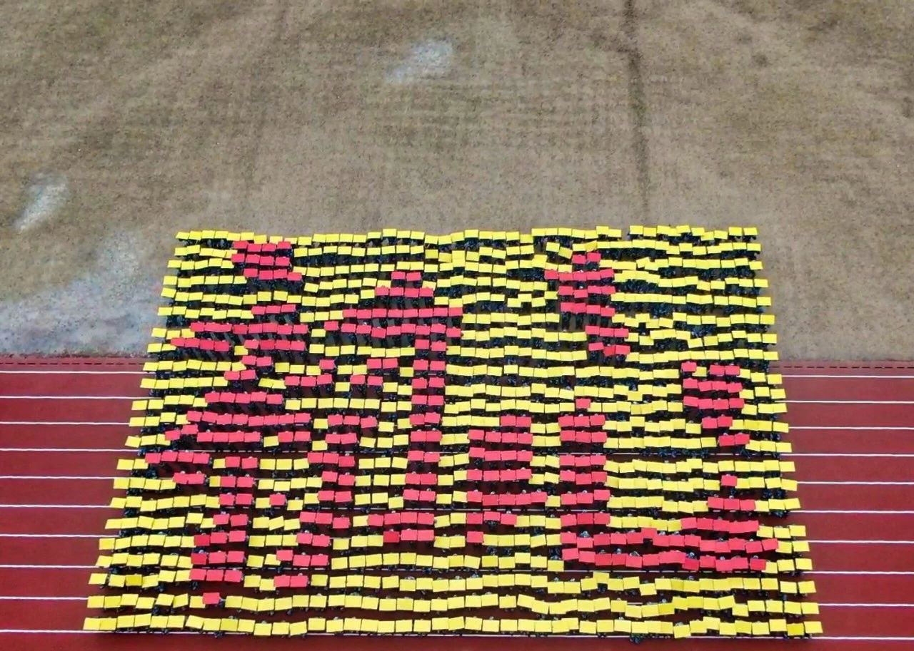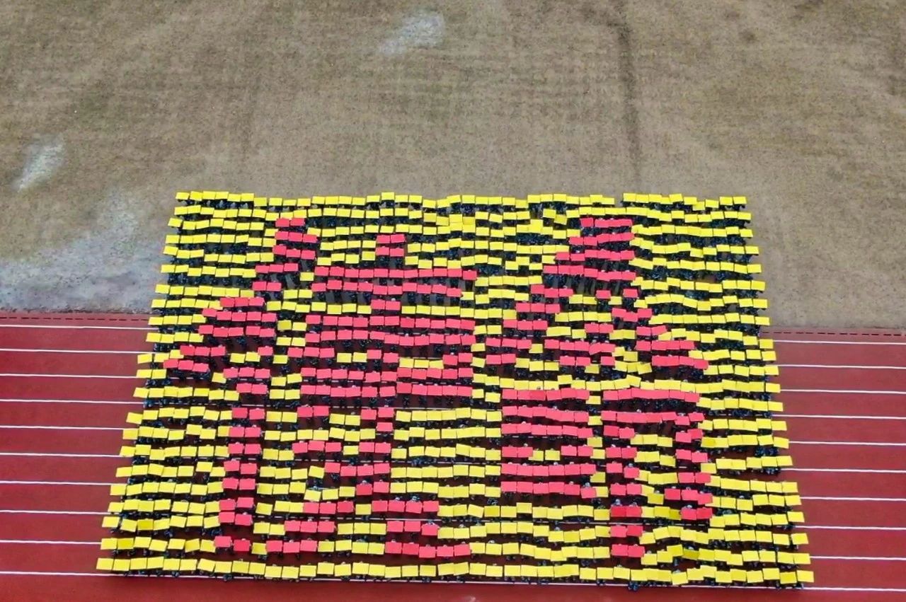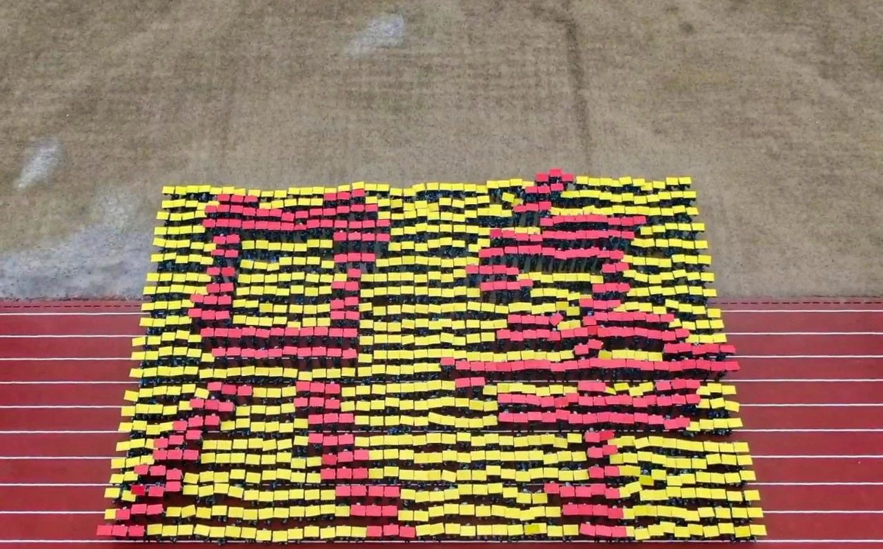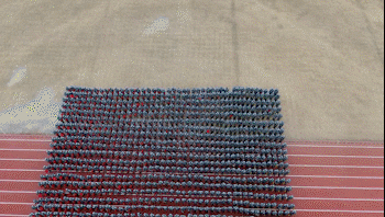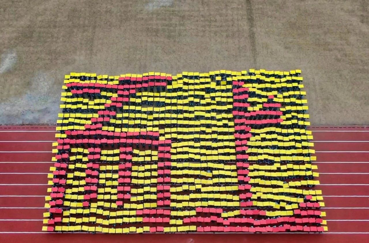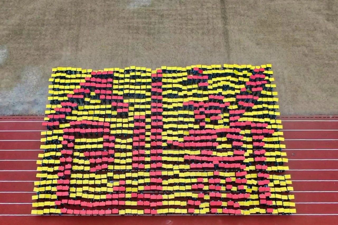 在音乐中,花样方队的同学们摆出各种造型