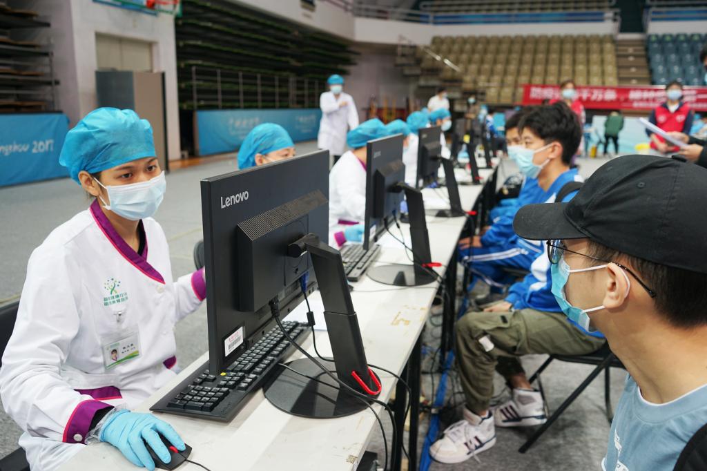 走进体育馆,新冠疫苗临时接种场地严格按照卫健部门要求划分为等候区、咨询区、开单区、接种区、观察区和异常处置区等多个功能区域。