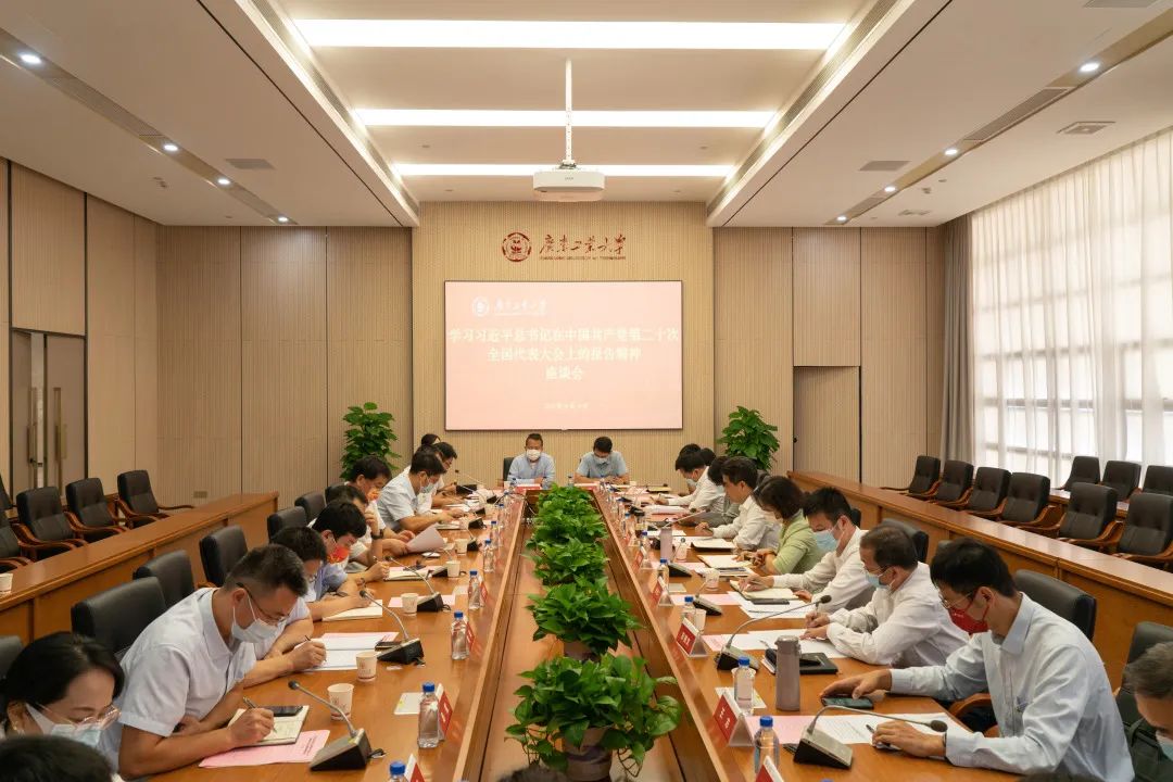 胡钦太强调,下阶段学习好、宣传好、贯彻好党的二十大精神是一项首要政治任务,要认真做好党的二十大精神的学习宣传贯彻工作,把思想和行动迅速统一到党的二十大精神上来,一要加强组织领导,迅速掀起学习宣传贯彻党的二十大精神热潮;二要切实抓好学习培训,着力推动学习向深度和广度发展;三要力求宣讲全覆盖,促进党的二十大精神入脑入心;四要加大理论研究阐释,力争推出高质量研究成果;五要把握正确舆论导向,营造浓厚的学习氛围;六要坚持知行合一,切实转化为工作实效。要把全校全员思想统一到党的二十大精神上来,把力量凝聚到实现党的二十大确定的各项任务上来,踔厉奋发、勇毅前行、团结奋斗,推进学校高水平创新型大学建设,推进各项工作高质量发展,为实现中华民族伟大复兴贡献广工力量。