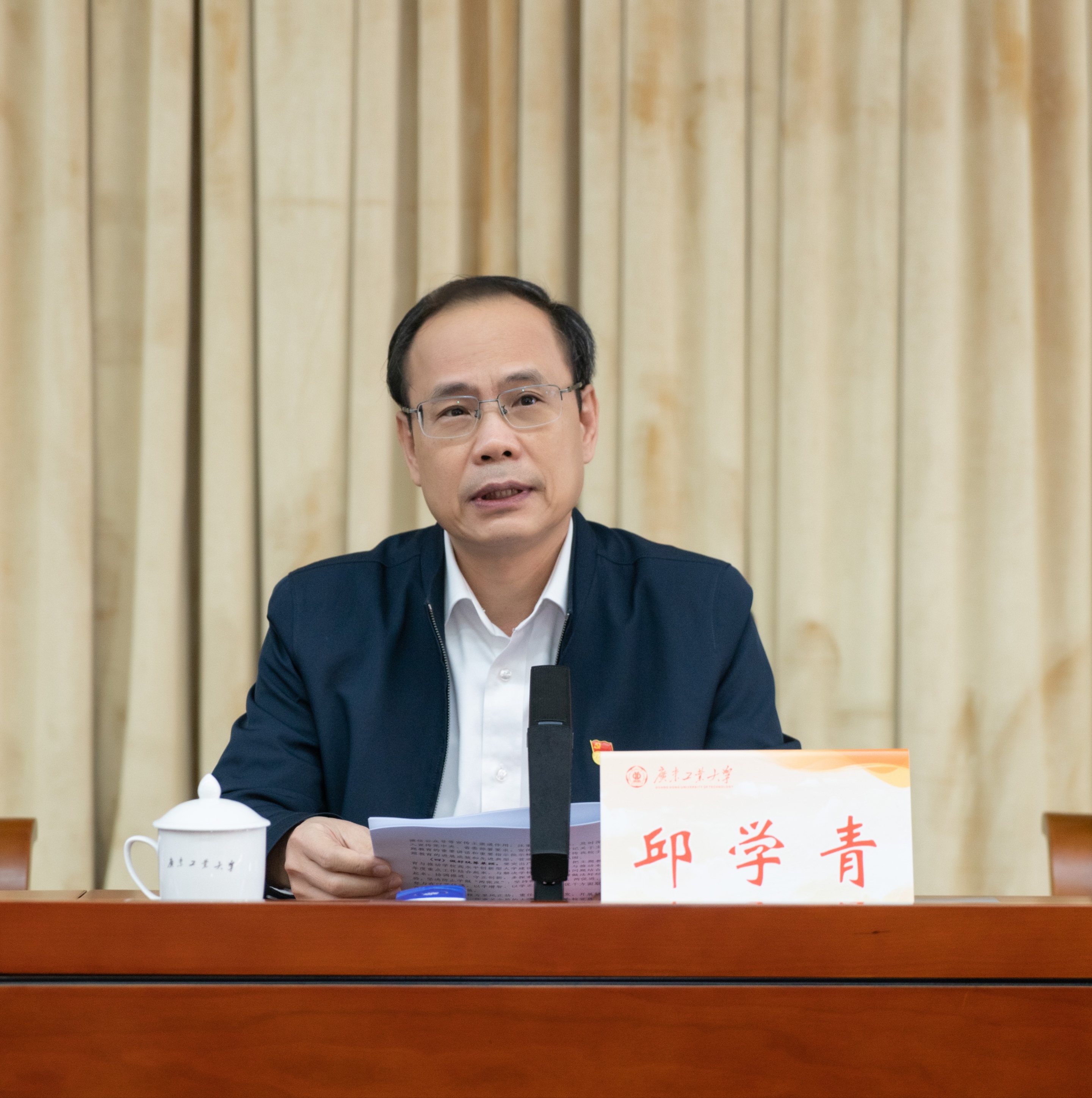 邱学青强调,开展好主题教育是一件事关全局的大事,是当前全校党员干部政治生活中的头等大事和首要政治任务。作为全省第一批开展主题教育的单位,学校党委将严格按照中央、省委的要求部署,牢牢把握“学思想、强党性、重实践、建新功”的总要求,在省委第十七巡回指导组的指导下,扎实开展主题教育,为奋进新征程凝心聚力。全校上下要统一思想,牢记“三个务必”,踔厉奋发、勇毅前行,为全面建设社会主义现代化国家、全面推进中华民族伟大复兴,为奋力推动广东在新征程中走在全国前列、创造新的辉煌,为深入推进学校高水平创新型大学建设而团结奋斗。