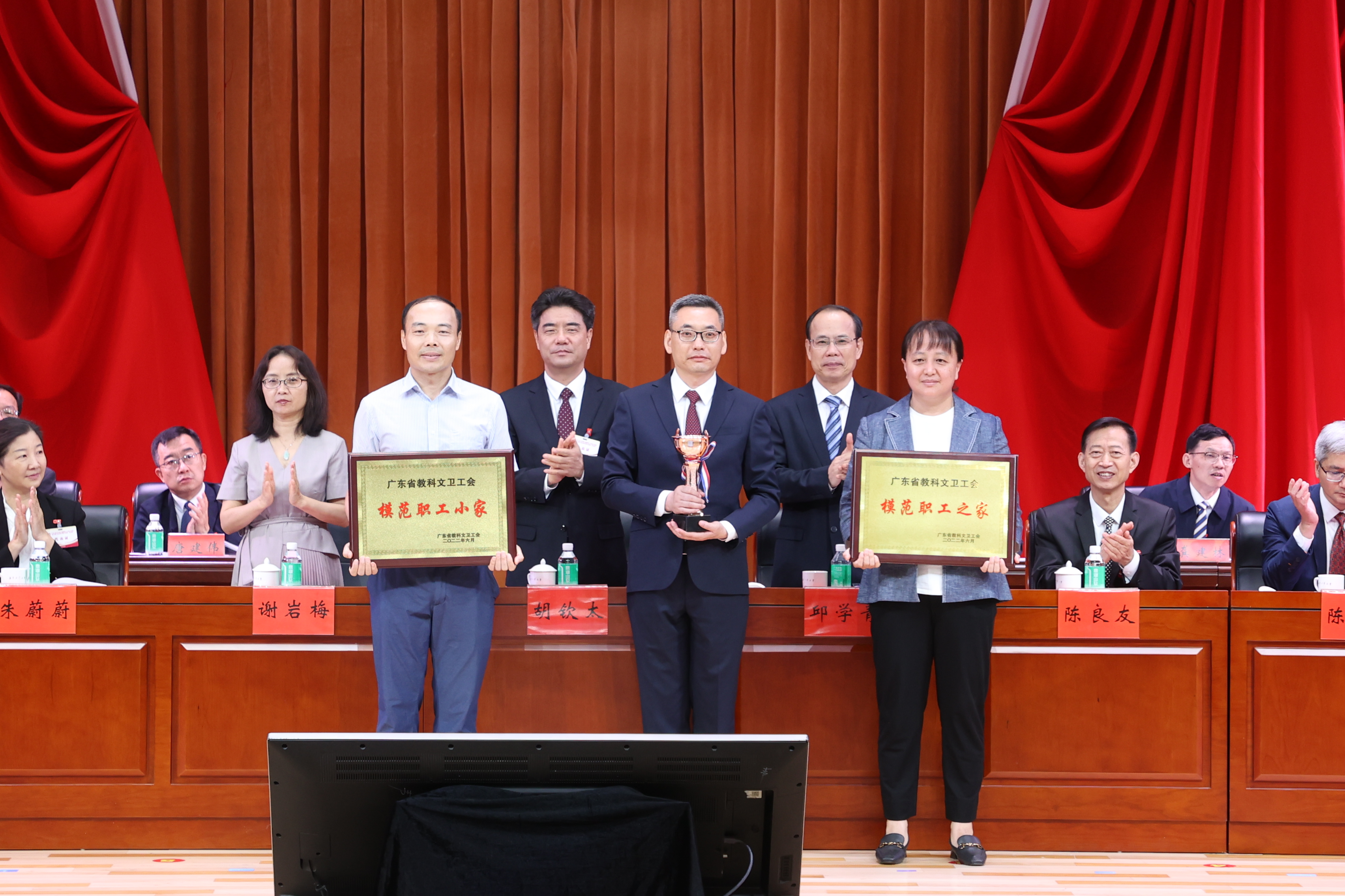 会议对广东扶贫济困红棉杯、广东省教科文卫工会模范职工之家、广东省教科文卫工会模范职工小家、广东省第四届厂务公开管理示范单位、广东省第六届高校(本科)青年教师教学大赛等获奖单位和个人进行表彰并授牌。