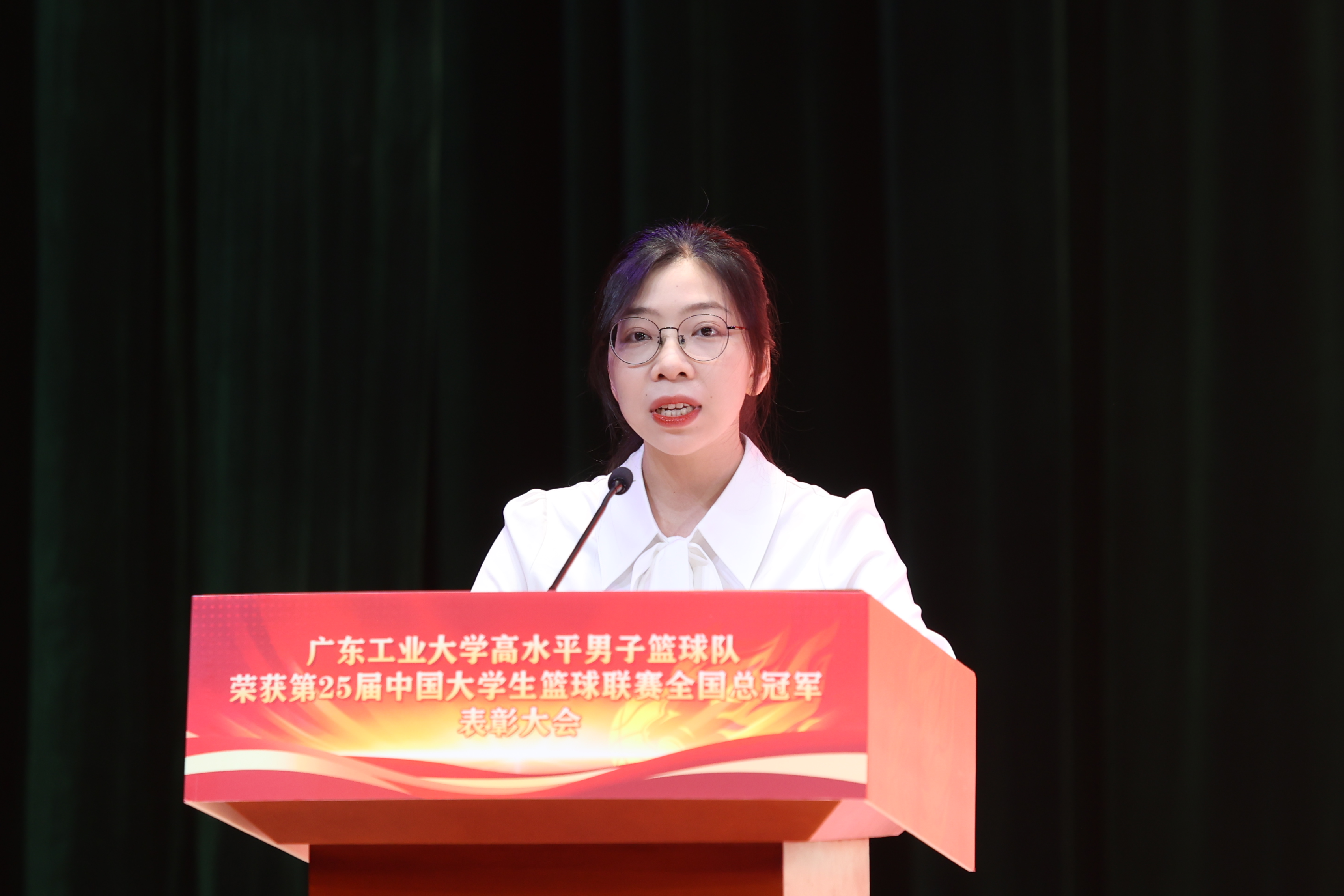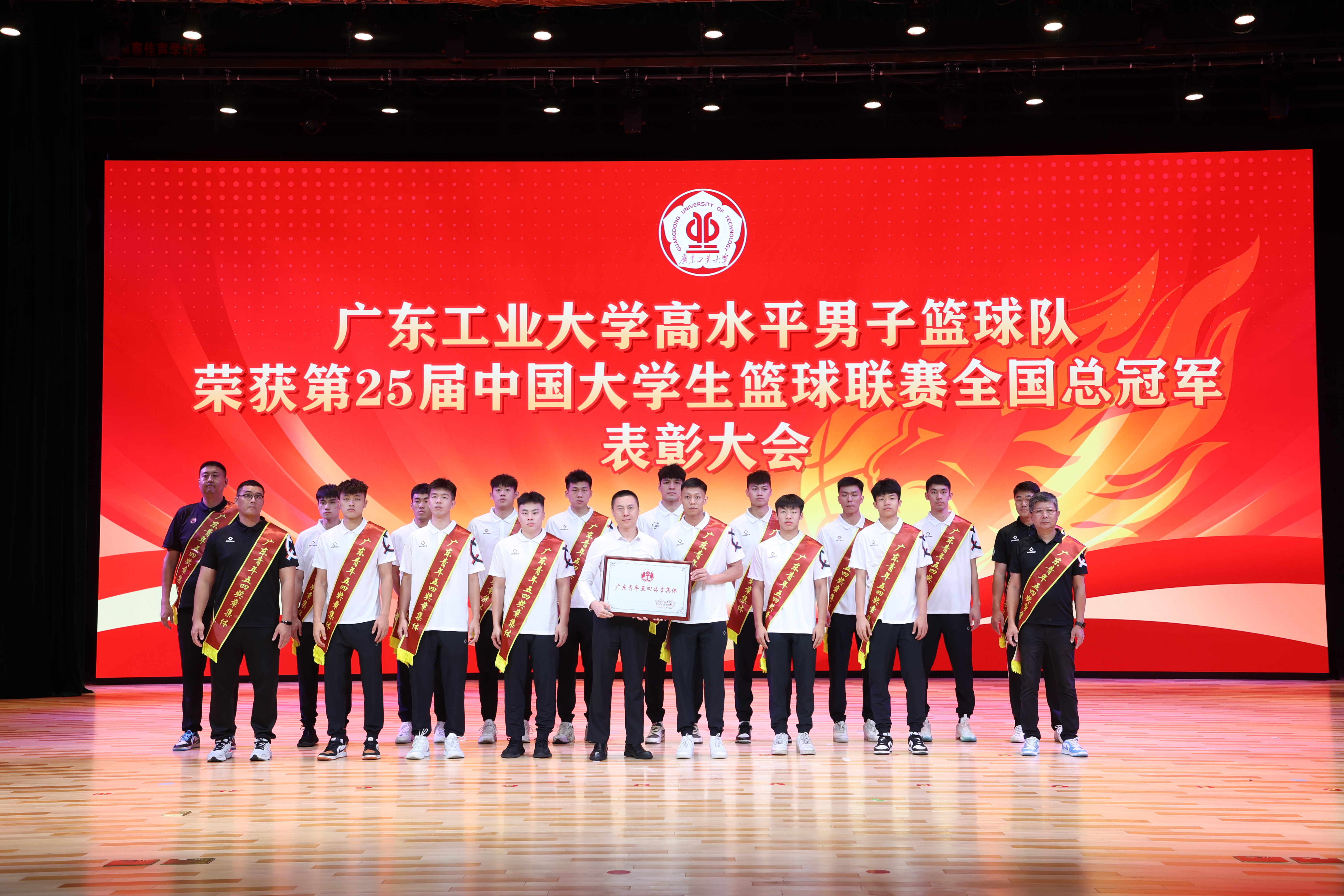 广东省委委员、学校党委书记胡钦太,校长、学校体育运动委员会主任邱学青,广东省教育厅二级巡视员邱克楠,广东省体育局党组成员、副局长林瑛,共青团广东省委副书记范春,广东省篮排中心书记、CBA广东队主教练、广东省青联副主席、广工校友杜锋,广东省篮球协会会长刘克军,学校党委副书记朱蔚蔚,校党委常委、副校长王成勇、栾天罡,副校长余林等领导嘉宾出席表彰大会。校党委副书记、学校体育运动委员会副主任陈卓武主持会议。