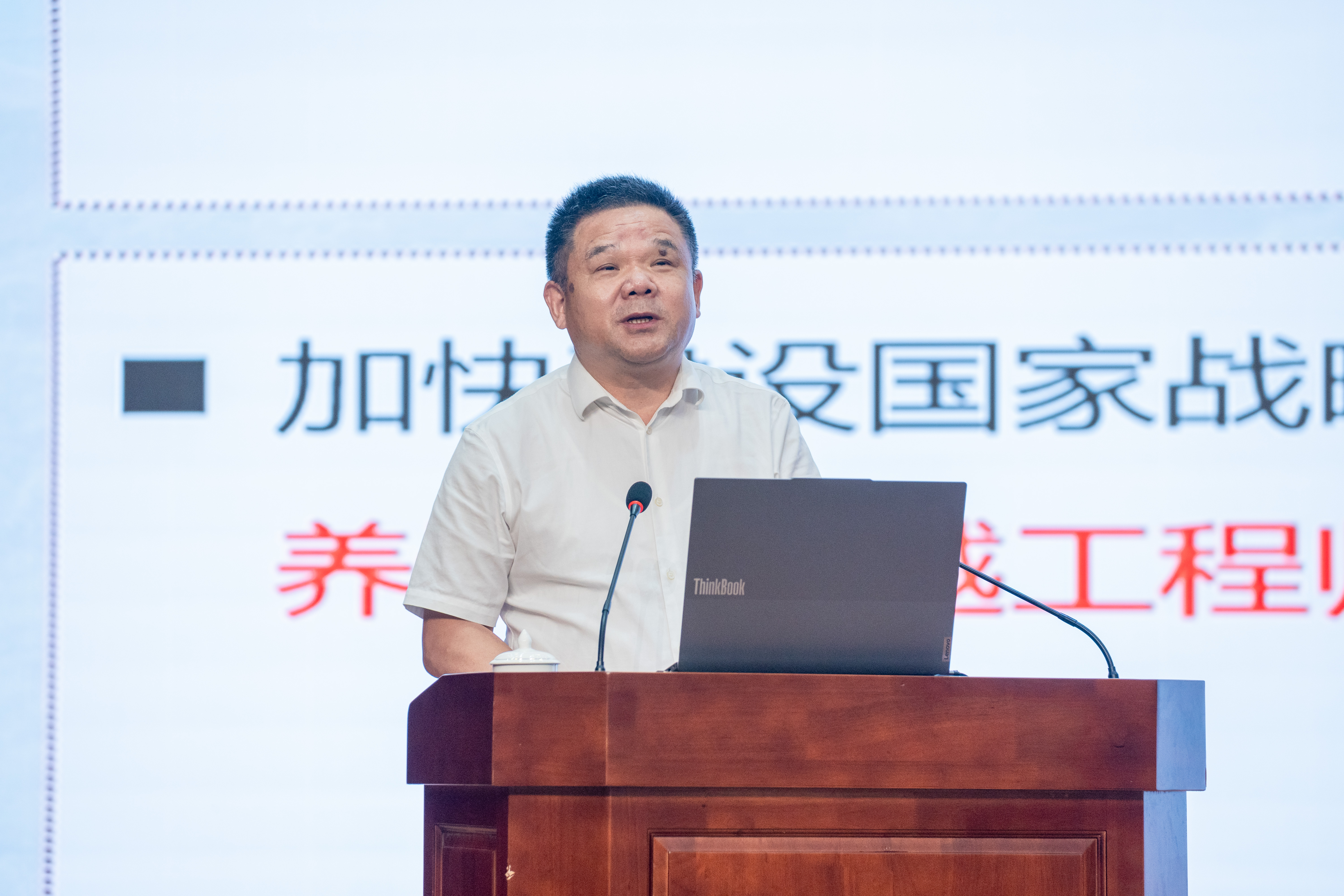杜承铭以《聚焦“十五五”教育大计,推进研究生教育高质量内涵式发展》为题作专题报告,结合国家对卓越工程师培养的迫切需求,分析在研究生规模快速增长的同时,学校所面临的教育管理、质量保障的压力以及现存痛点、难点,强调以加强学位点建设为抓手,促进学位与研究生教育高质量内涵发展。