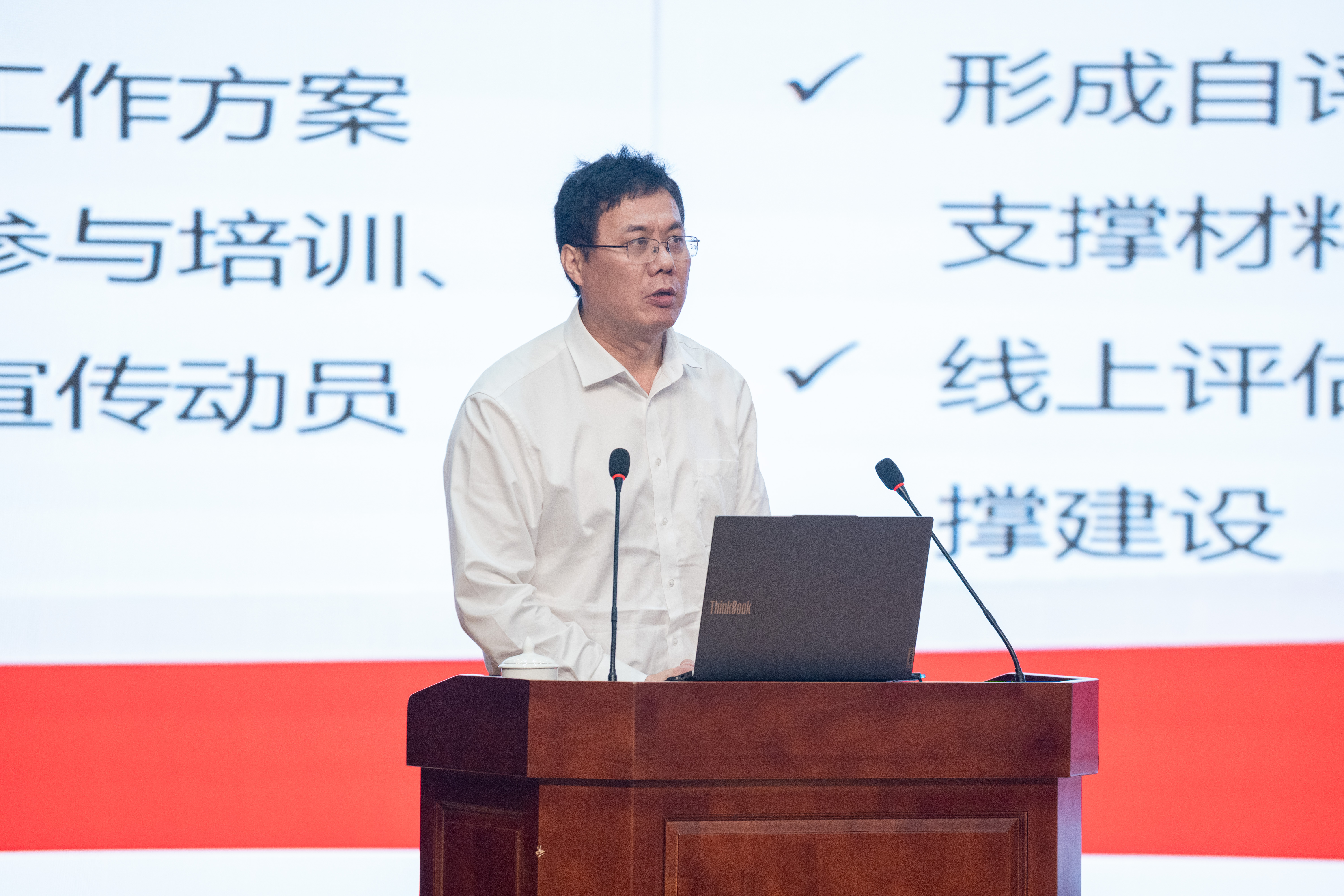 王振友以《聚焦质量 深化整改 全面提升创新型人才自主培养水平》为题作专题报告,他结合今年学校本科教育教学审核评估情况和相关形势政策剖析现存问题,提出以全面提高人才自主培养质量为主线,围绕“1+2+3”攀撑计划,进一步推动学校本科人才自主培养模式综合改革,从课程、教材、课堂、平台、专业和管理“六位一体”纵深变革引领学校本科专业高质量建设,推进人才培养总目标的达成。