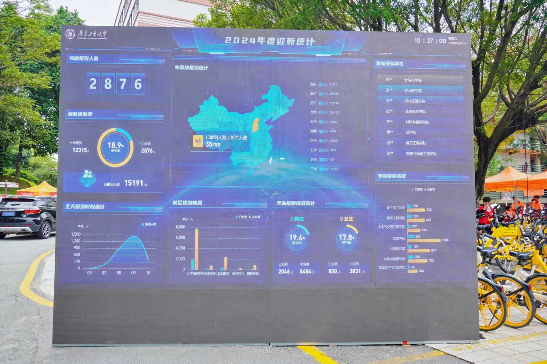 学校官方视频号、广工青年汇等新媒体平台,对迎新现场进行了视频直播,自动化学院大四学生廖胤升与来自东源县蓝口镇的新生邹语珺一起,带领大家游览校园、打卡多处网红“景点”,直播观看人数达15万余人次,点赞8万余次。