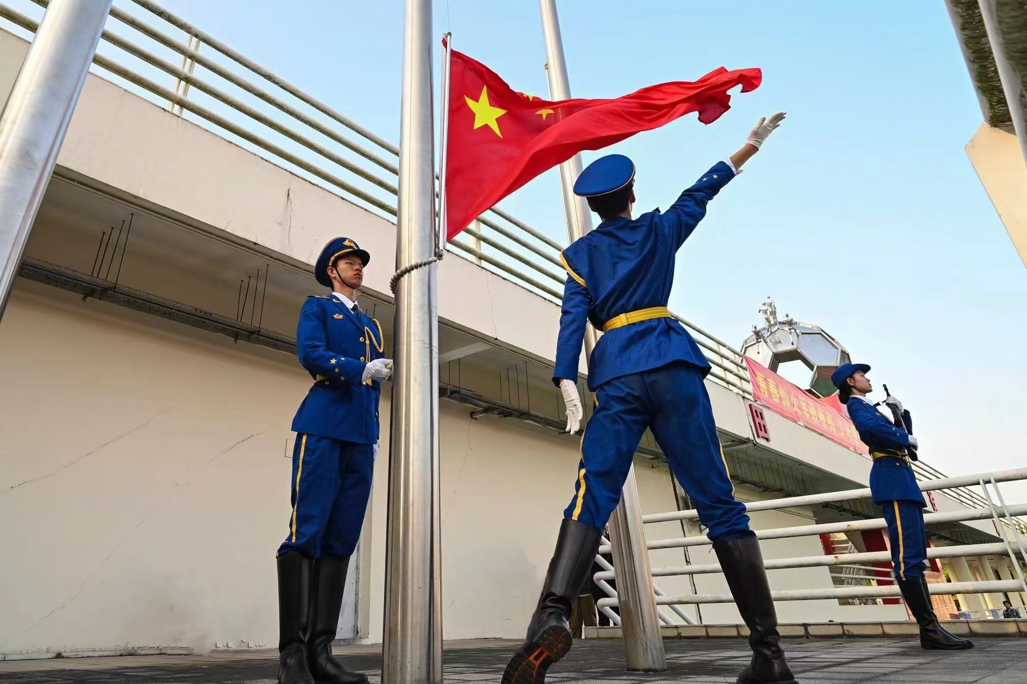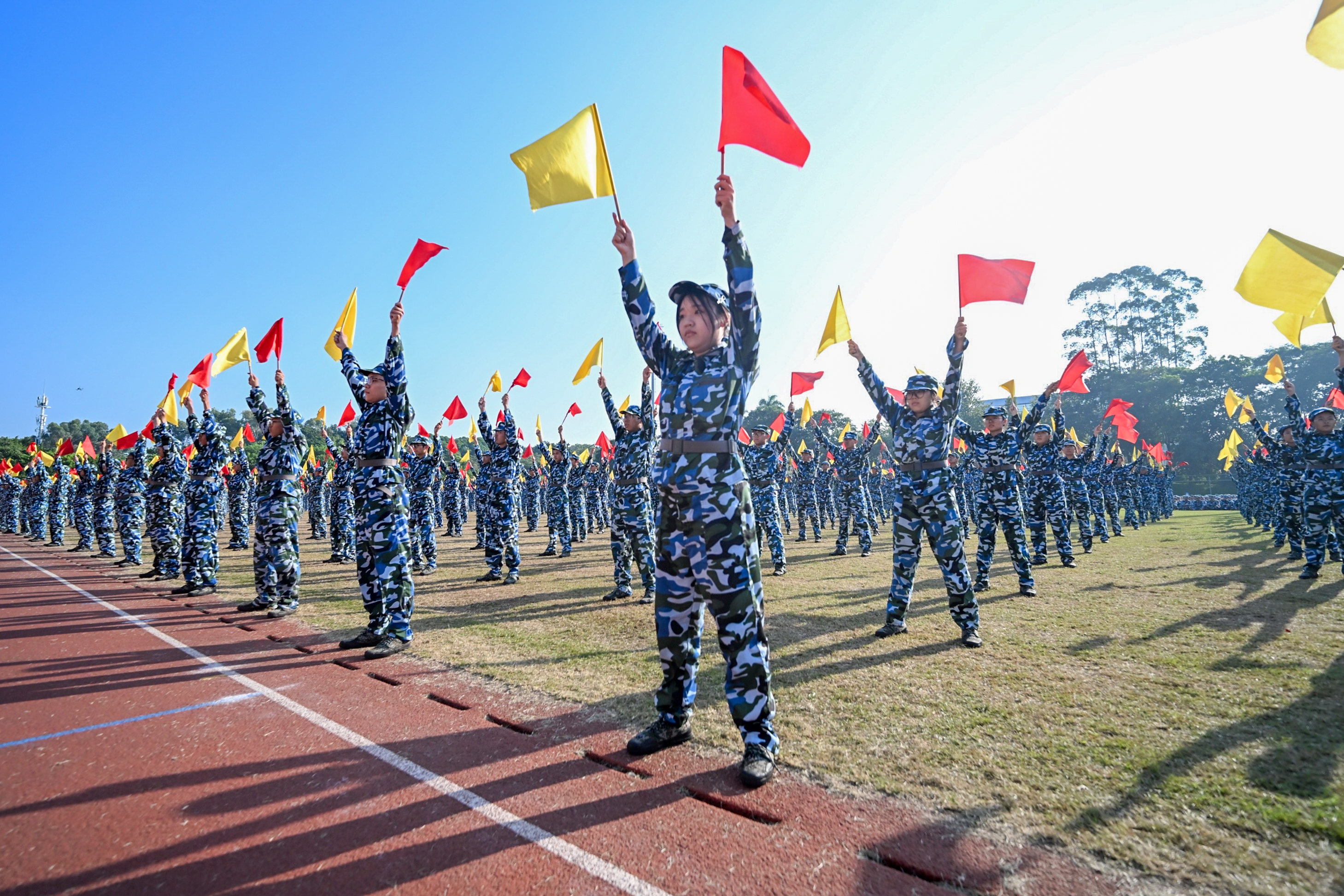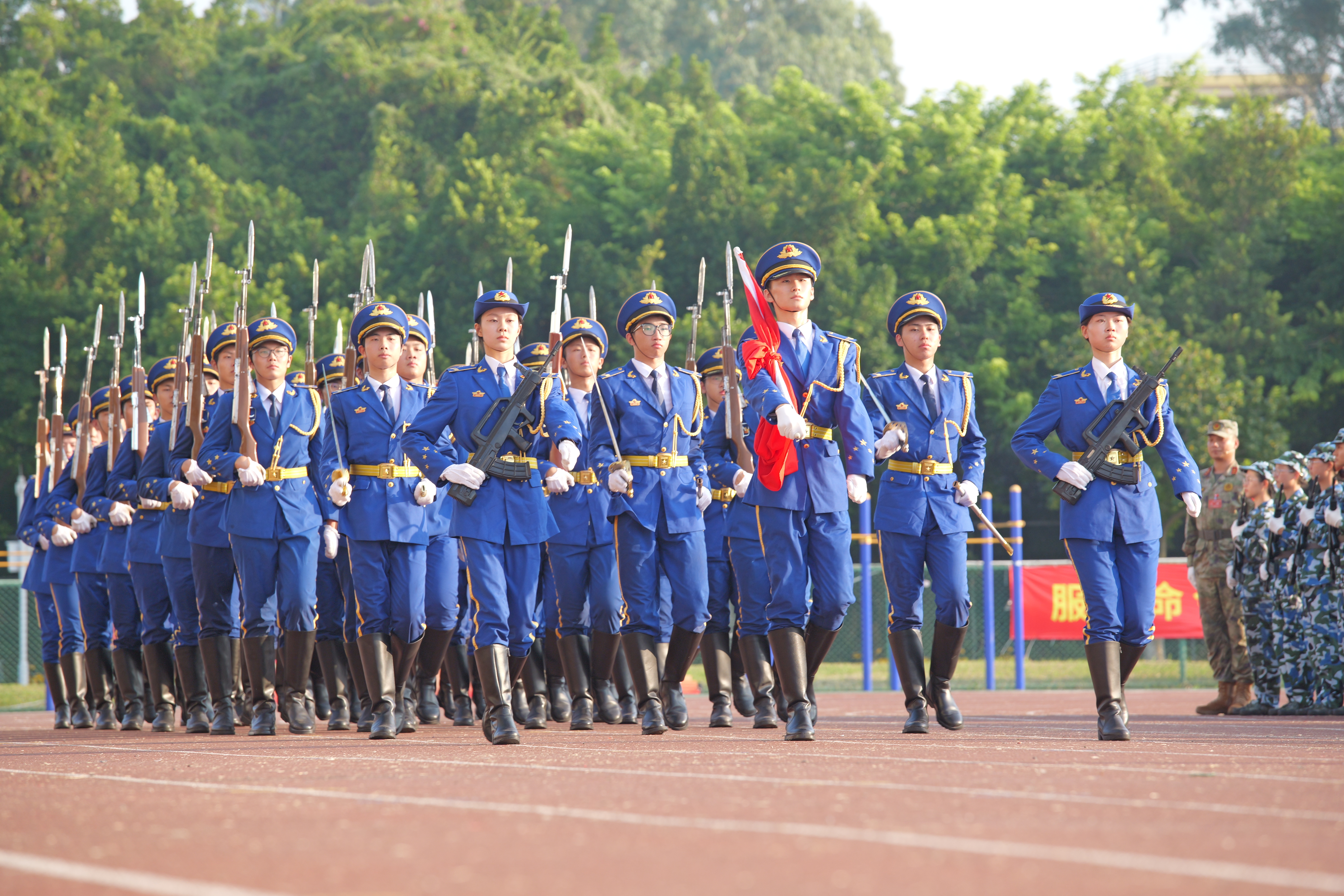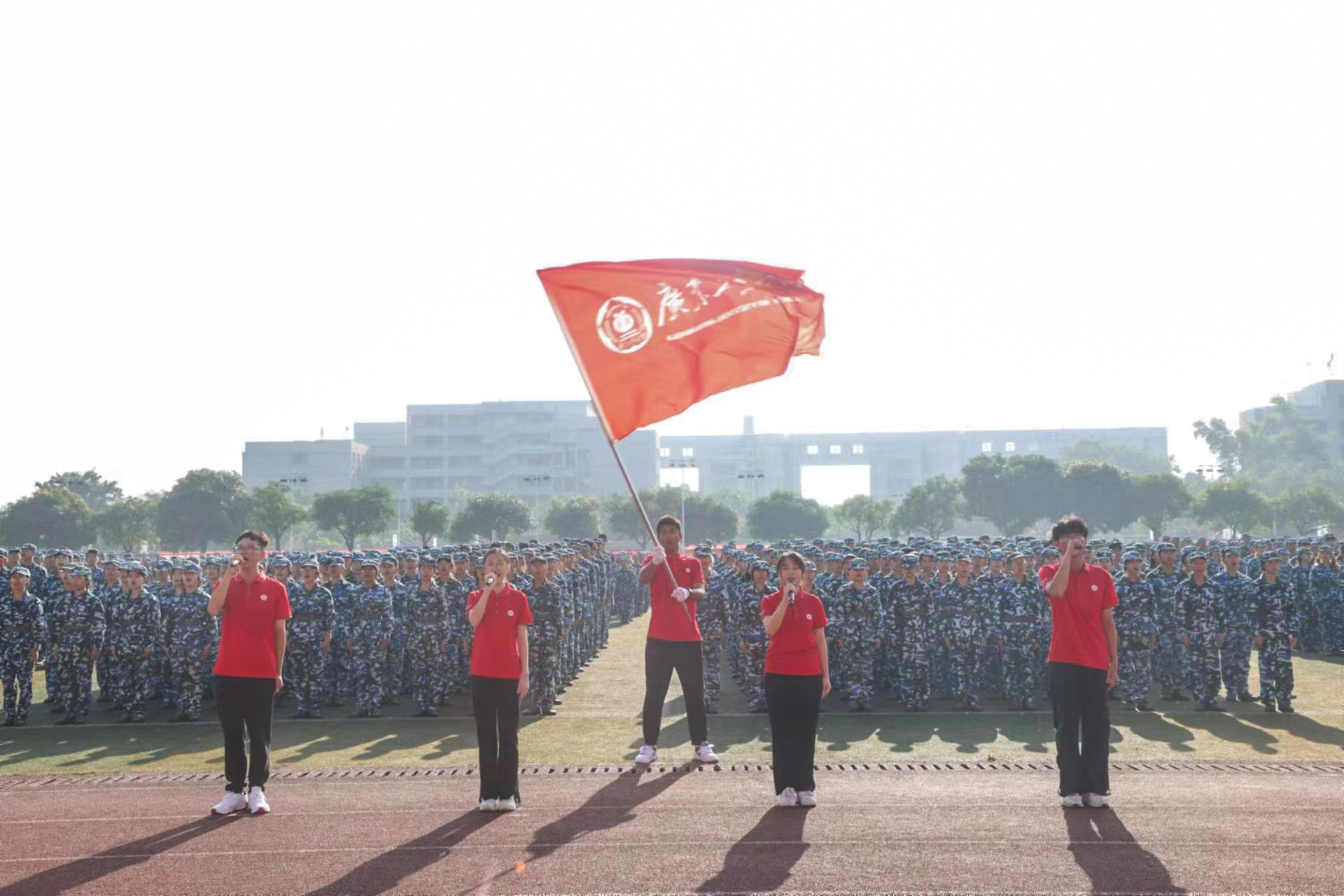 9月30日,安博app最新版下载庆祝中华人民共和国成立75周年主题升旗礼暨2024级学生军训总结表彰大会在大学城校区、龙洞校区和揭阳校区举行,同升国旗、共唱国歌,为祖国母亲献上最真挚的告白。东风路校区同学在龙洞校区参会,番禺校区同学在大学城校区参会。一万余名新生经过14天的淬炼与蜕变,以威武的军姿、崭新的风貌、昂扬的精神展示军训成果,随冉冉升起的五星红旗一同表达对祖国的无限热爱。