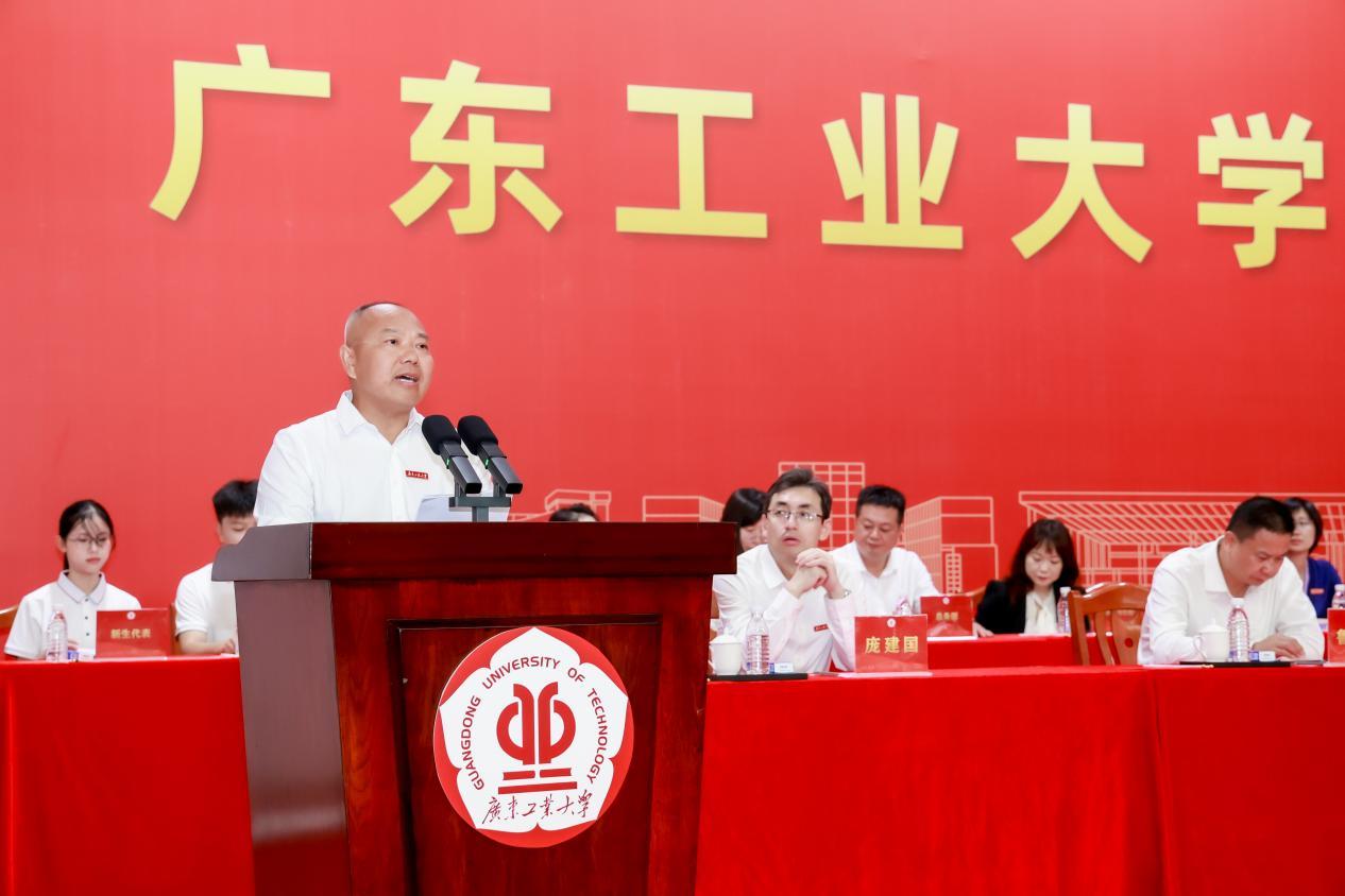 他对同学们提出三点希望:一是坚定理想信念,传承红色基因,做心怀家国的广工人。学校首任党委书记兼院长、无产阶级革命家曾志同志,为学校办学铸牢了“忠诚于党、爱国奉献”的红色基因。一代代广工人在砥砺奋斗中传承红色血脉,凝聚成“要高山低头,令河水倒流”的东深精神,“团结拼搏、不畏强手”的广工男篮精神,“团结、勤奋、求是、创新”的校训精神,熔铸成赤诚报国、追求卓越的精神品质。希望同学们赓续广工红色基因与光荣传统,将个人理想融入国家发展大局,争做让党放心、爱国奉献、担当民族复兴大任的时代新人。