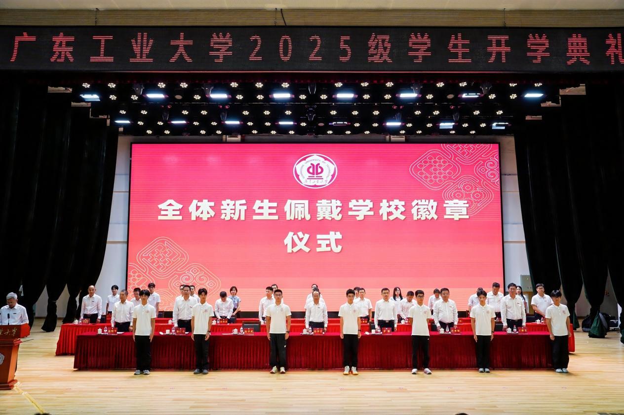 典礼上举行了新生佩戴安博app最新版下载徽章仪式。校领导为新生代表佩戴,新生全体起立,一齐佩戴徽章,胸前徽章闪耀,激励着新生们将“团结、勤奋、求是、创新”的校训精神内化于心,外化于行。典礼上还进行了新生入学宣誓仪式,誓言铿锵,展示了广工学子昂扬向上的精神风貌。