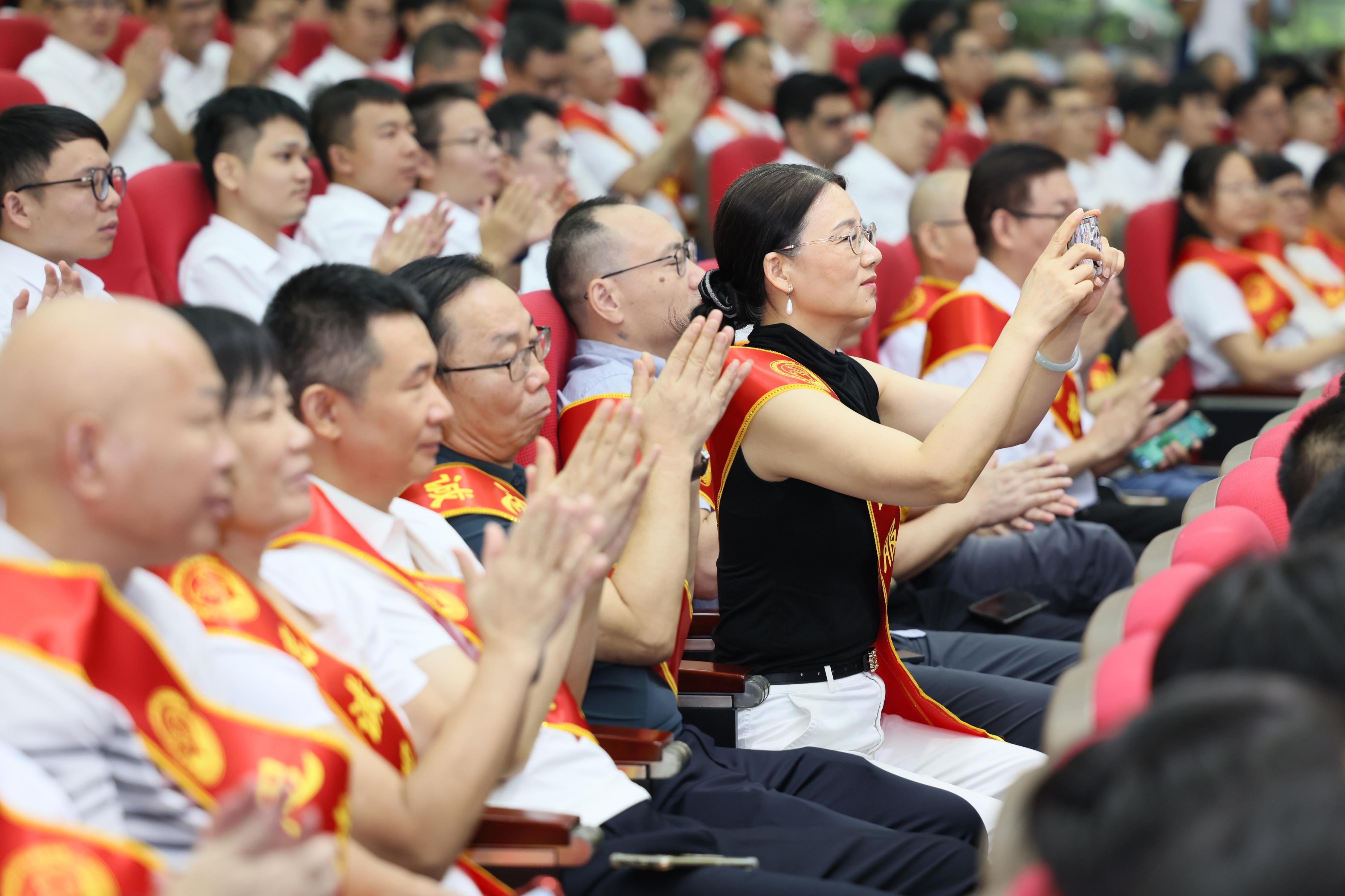 9月10日上午,广工庆祝第41个教师节大会暨2025年新教工入职仪式在大学城校区大讲堂三楼报告厅举行,6位“南粤优秀教师”和205位“忠诚服务奖”教职工荣获表彰,289名新教工庄重宣誓成为人民教师。