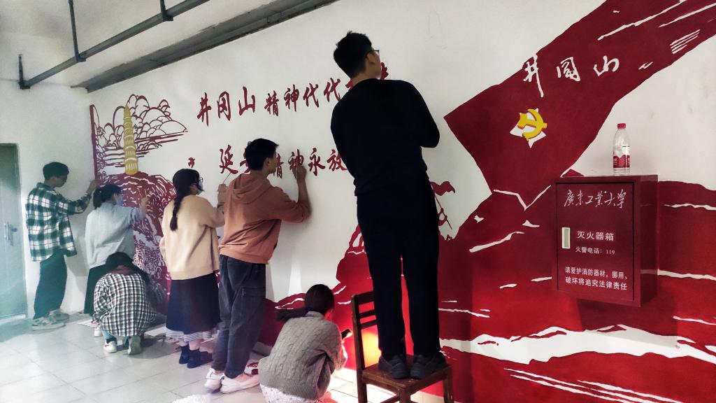 学院积极引导学生将党史学习体验感悟融入到艺术设计创作实践之中,以绘说史、以创述史、以舞叙史,争做红色文化的传播者和践行者。学院组织150余名学生在学生社区开展“中国共产党人的精神谱系”墙绘创作活动。活动开展以来,共有300多人次参加,创作墙绘作品30多幅,创作面积达200多平方米,内容涵盖“红船精神”“井冈山精神”“延安精神”“长征精神”等。学生党员全情投入,高年级带动低年级,接力作画,用艺术之美点亮百年党史之光;在党史融入课程思政的感召下,同学们将党史元素融入艺术创作的自觉性与行动力得到激发,在毕业设计中,将农讲所、广州起义纪念碑等红色建筑符号融入到创作中,通过图案、包装、器皿等多个设计形式致敬建党百年;数媒动画系学生将党史知识、习近平总书记系列重要讲话等内容用新媒体形式呈现,开发出H5作品《百年党史时空穿梭隧道》,仿佛置身党的百年辉煌历程,进一步增强党史学习的体验感与互动感;视觉传达设计系学生将英雄人物、党史重大事件融入红色文创产品,环境设计系学生选取红色建筑地标进行改造设计,用生动的方式再现红色故事,复活红色记忆;打通党史学习教育“最后一公里”,组织学生赴顺德青田村、英德雅堂村以及学校周围街道社区开展常态化党史学习教育实践活动,用设计助力乡村美化与社区改造,为乡村振兴与社会发展进步贡献智慧与力量。