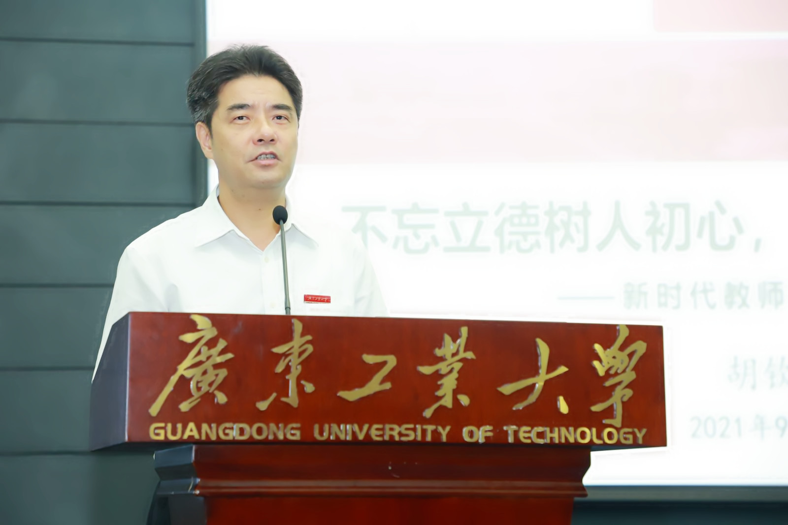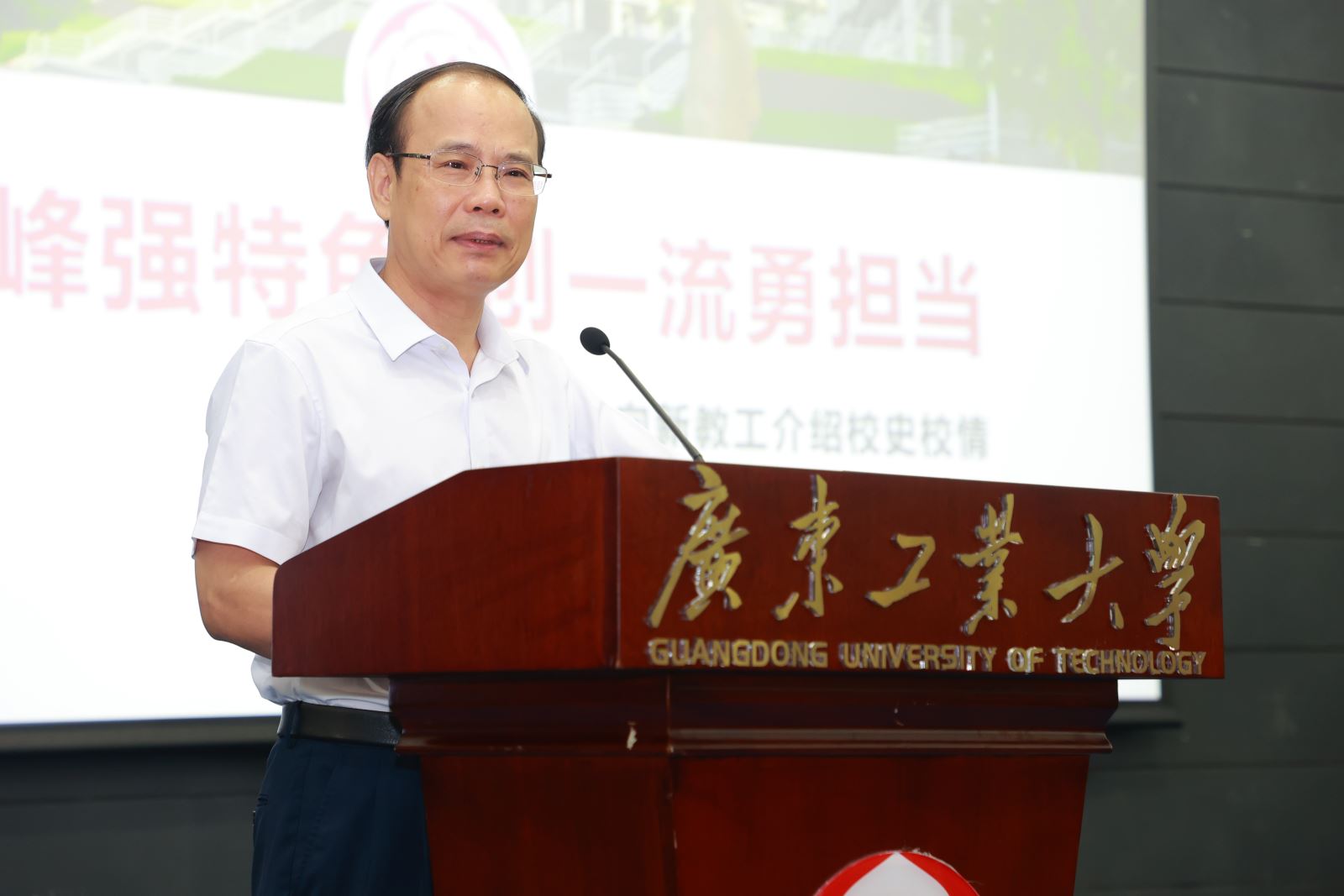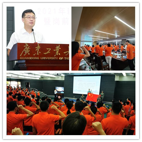 邱学青为新教工介绍校史校情。他声情并茂地向新教工们讲述了广工自建立以来的发展历程,一张张泛黄的历史照片,一条条喜人的崭新数据,变的是广工的样貌,强的是广工的实力!邱学青期望新教工们能够继承老一辈广工人的意志,艰苦奋斗,自强不息,成为学校做优做强的不竭动力。他表示,当前粤港澳大湾区建设和我省加快建设科技强省、制造强省正如火如荼,学校抢抓机遇,深入实施“1+2+3”攀撑计划,希望新教工们要与学校一起加速奔跑,为广工发展付出辛勤汗水,在广工发展中成长进步!
