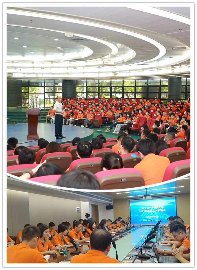 9月26日上午,2021年新教工入职宣誓暨岗前培训班开班仪式在大学城校区(主会场)隆重举行,学校党委书记胡钦太、校长邱学青参加仪式并分别为新教工讲授师德教育第一课和校情校史第一讲。263名新入职教师穿着橙色统一服装,分别在大学城校区圆弧报告厅、揭阳校区行政楼副楼202室参加仪式。仪式由副校长栾天罡主持。