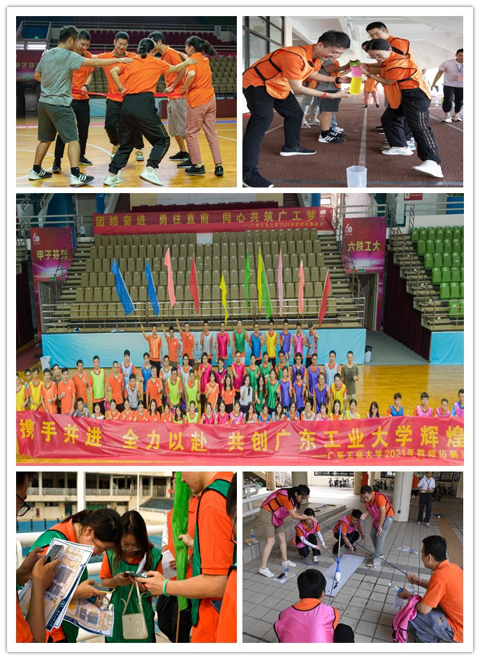 最后的团建拓展活动在大学城体育馆举行,老师们分成十二组,在学校体育部组建的教练团队指导下,完成了“破冰起航”、“浣熊圈”、“妙笔生花”、“一圈到底”、“世界球”、“高山流水”和 “极速60”等团建拓展任务。身穿不同颜色队服的老师们团队合作、携手并进、全力以赴的多彩身影,成为当天学校体育场上靓丽的风景。团建拓展活动,快速拉近了新老师间的距离,树立了团队合作意识,增强了新教工对学校的归属感和集体荣誉感。