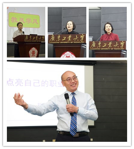 在专题辅导环节,来自北京理工大学刘平青教授、中山大学王金发教授、华南师范大学张芳芳教授和夏宝君副教授等专家分别作了专题报告,对新教工在教育法规政策、师德师风、教师职业规划、职业形象塑造等方面进行了深入的讲解和辅导。