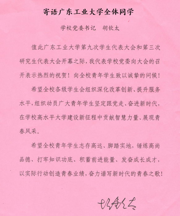 大会在庄严的国歌声中正式拉开帷幕。胡钦太在寄语中代表学校党委向大会的召开表示热烈祝贺。他希望全校各级学生会组织深化改革创新、提升服务水平,组织动员广大青年学生坚定跟党走,奋进新时代,在学校高水平大学建设新征程中贡献智慧力量、展现青春风采;他希望全校青年学生树立远大理想,担当时代责任,勇于砥砺奋斗志存高远、脚踏实地,锤炼高尚品德、打牢知识功底、积蓄前进能量,发奋成长成才,以实际行动创造青春业绩,奋力谱写新时代的青春之歌!
