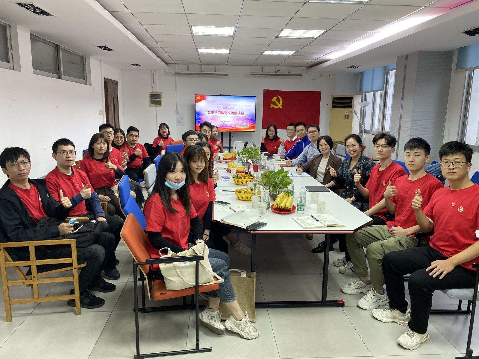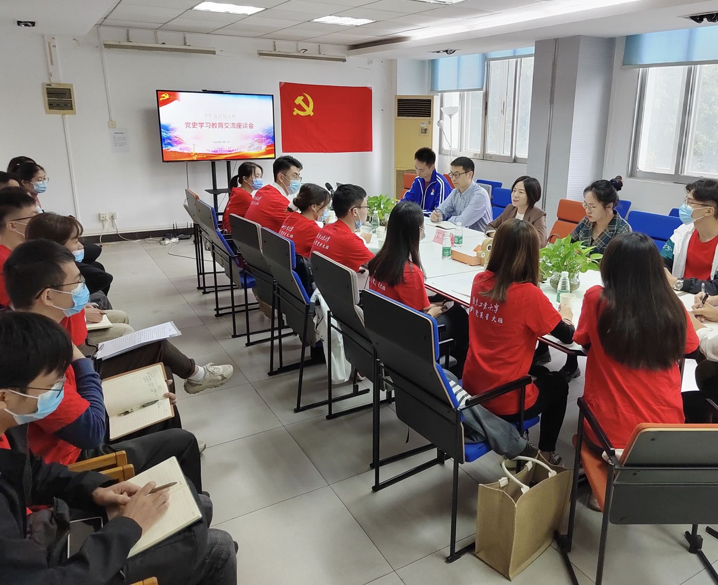 10月23日下午,学生党员“星火班”在东风路校区召开党史学习教育交流座谈会,进一步深入学习贯彻习近平总书记“七一”重要讲话和纪念辛亥革命110周年重要讲话精神,阶段性回顾总结党史学习教育开展情况,以巩固和提高党史学习教育成效,推进党史学习教育纵深开展。党委组织部、党校办公室负责人,“星火班”指导老师、马克思主义学院老师参加了学习交流。