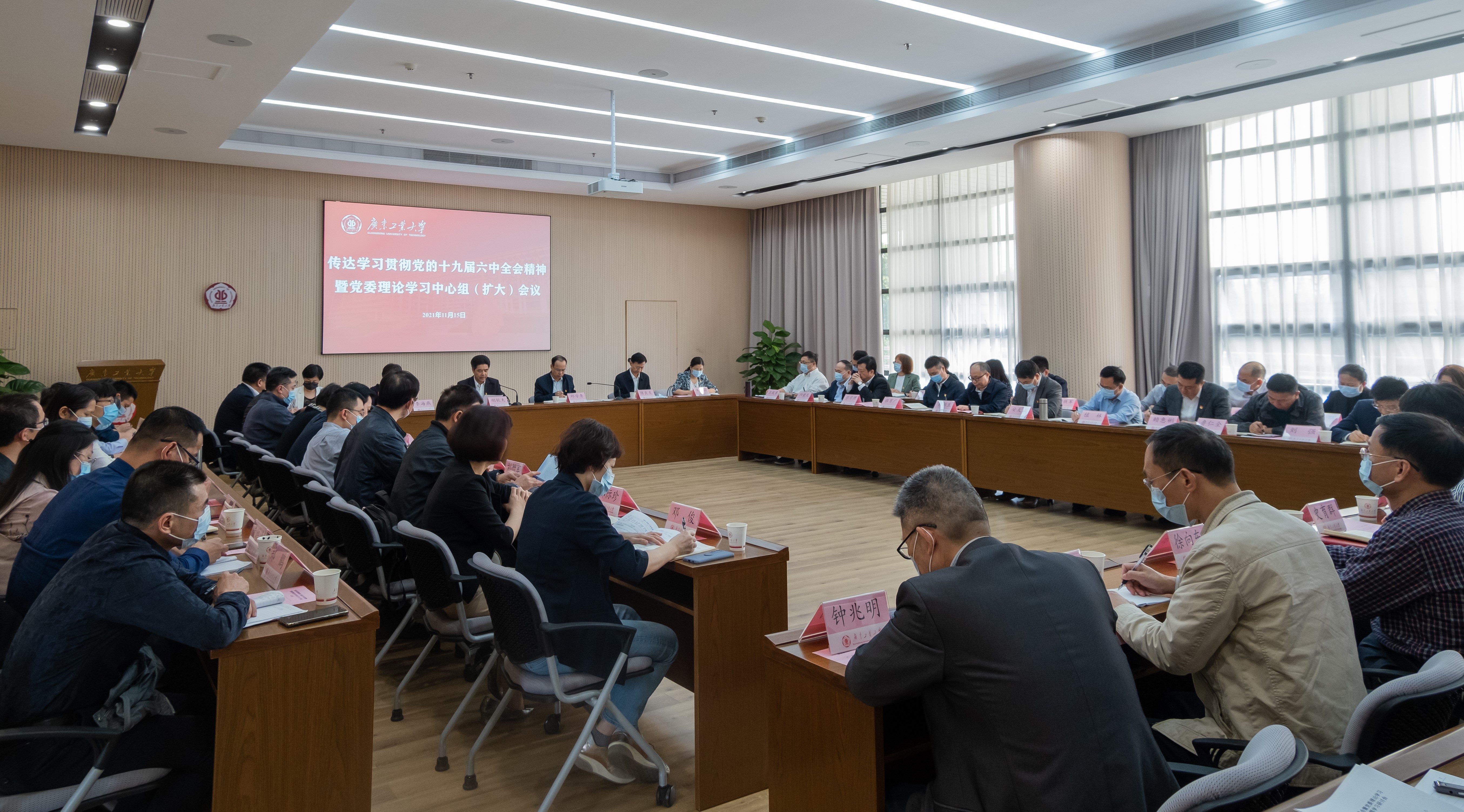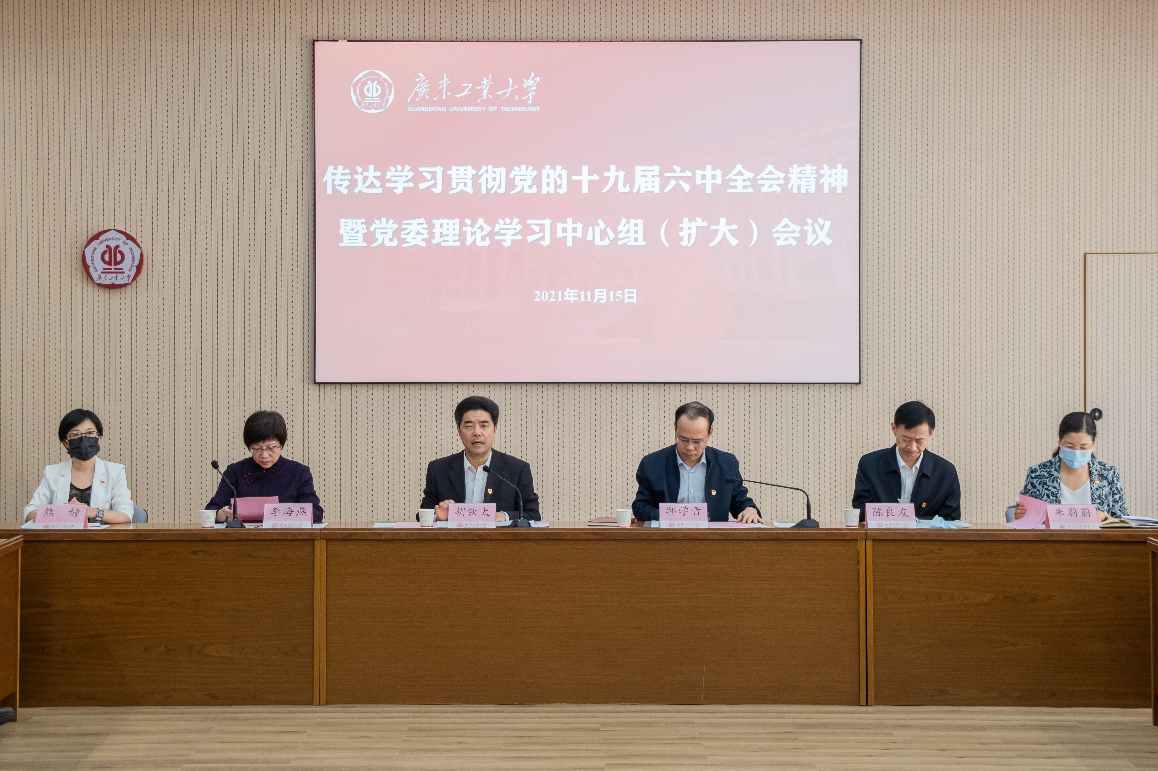 11月15日,学校党委在大学城校区大讲堂召开理论学习中心组(扩大)会议,专题传达学习贯彻党的十九届六中全会精神。省委教育工委党史学习教育第五巡回指导组组长李海燕一行到会指导,校党委理论学习中心组成员、各二级党组织书记参加会议,校党史学习教育领导小组办公室各工作组组长列席会议。会议由学校党委书记胡钦太主持。