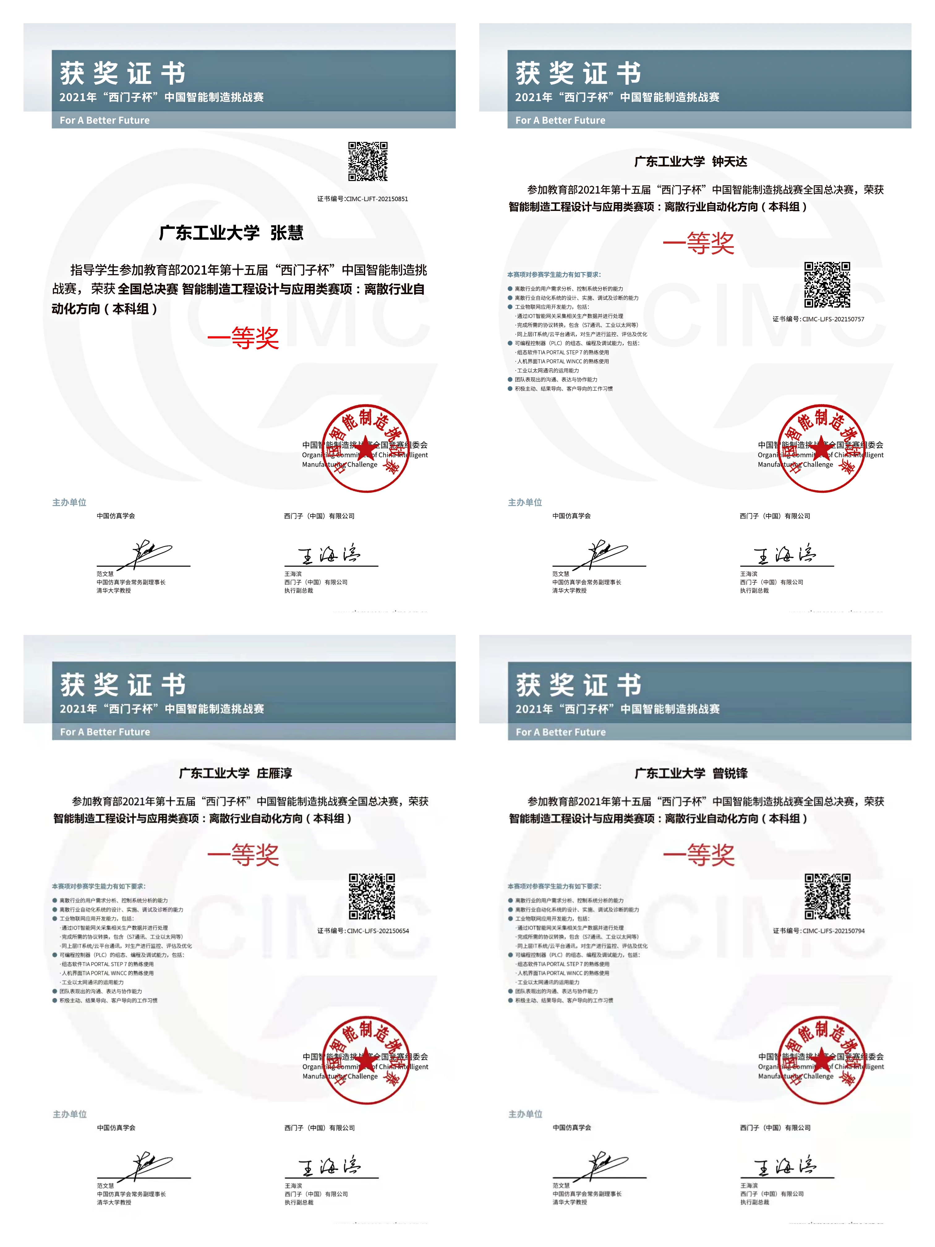 日前,第十五届“西门子杯”中国智能制造挑战赛(CIMC)全国总决赛落幕,我校学子在本届比赛的离散行业自动化方向中表现出色。在自动化学院教师张慧的带领下,4支队伍参与全国初赛,在华南一赛区获得了1项特等奖、3项一等奖,其中特等奖队伍成员钟天达、庄雁淳、曾锐锋代表安博app最新版下载参加了全国总决赛,并获得全国一等奖。