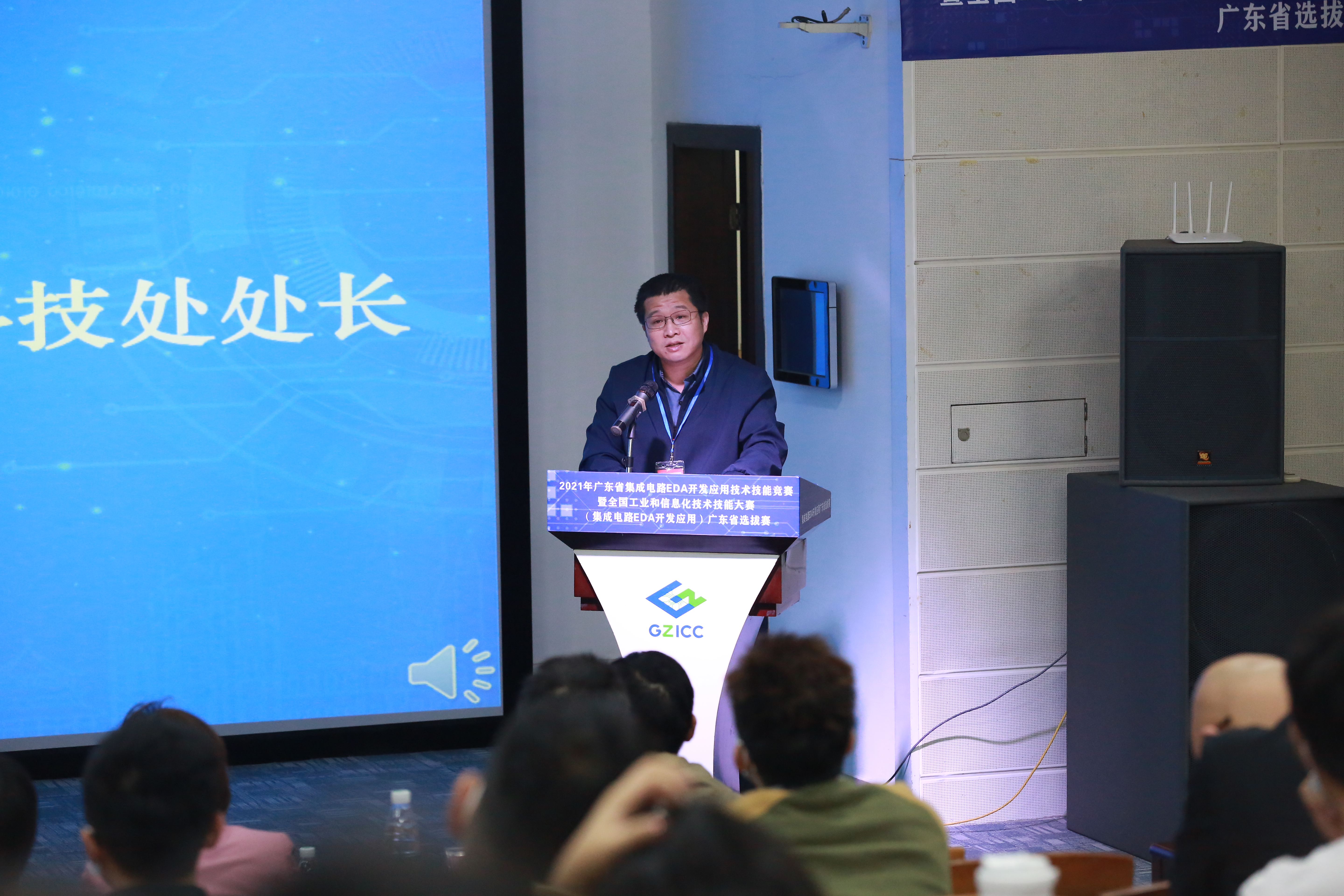 广东省工业和信息化厅电子信息工业处处长蓝艾青在致辞中指出,集成电路设计是广东集成电路的优势,2020年全省集成电路设计收入近1500亿元、占全国的37%,居全国第一。EDA开发和应用在集成电路设计领域发挥极为重要的作用。举办集成电路EDA开发应用技能大赛,是落实省委省政府制造强省战略部署、推动我省集成电路产业发展的有力举措,对加快我省集成电路高技能人才队伍建设、培育广大教职员工和学生技能实操能力、弘扬企业精益求精的工匠精神具有重要意义。