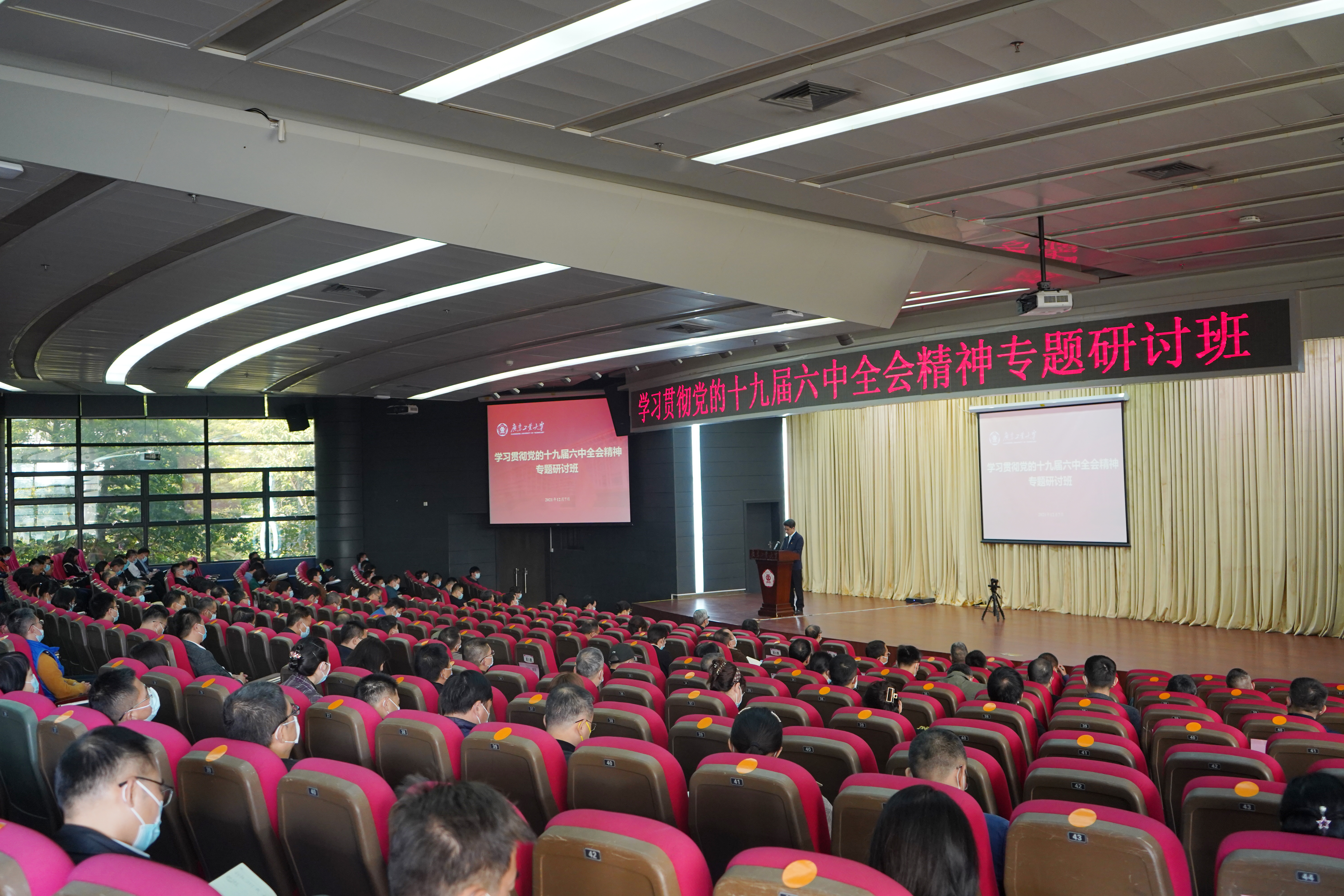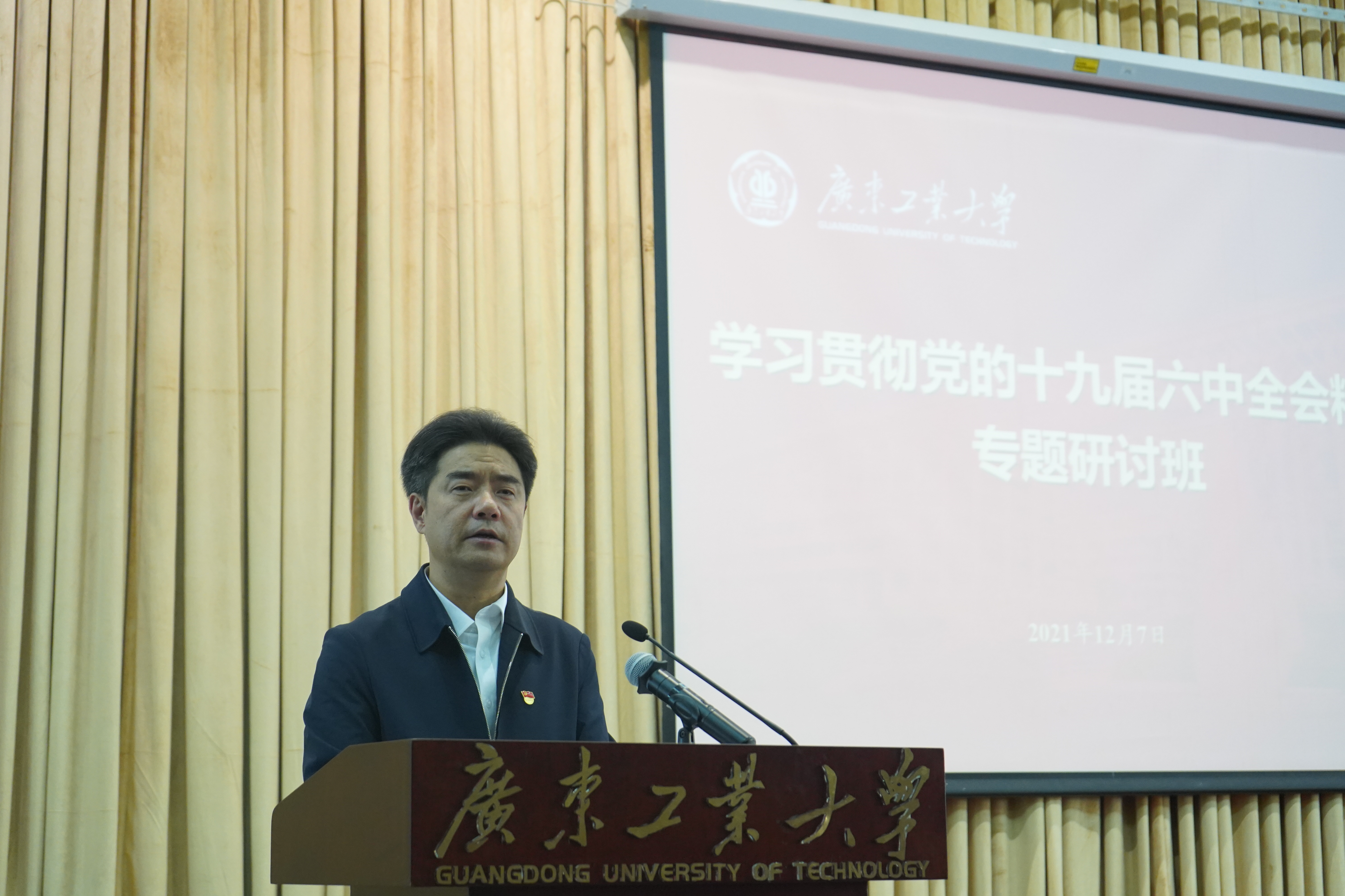 为认真学习贯彻党的十九届六中全会精神,推动党史学习教育向纵深发展,根据学校党史学习教育工作安排,12月7日下午,我校在大学城校区大讲堂中心报告厅举行学习贯彻党的十九届六中全会精神专题研讨班。研讨班分为三个环节,校党委书记胡钦太作动员讲话,研讨班成员参加专题辅导报告,各二级党组织、各单位、部门结合工作实际开展集中学习交流研讨。省委教育工委党史学习教育第五巡回指导组到场指导。在家校领导、校党委理论学习中心组成员,学校党史学习教育领导小组成员、办公室成员,各二级党组织书记及全校中层副职以上干部近250余人参加研讨班。揭阳校区设立分会场。研讨班由学校党委副书记朱蔚蔚主持。