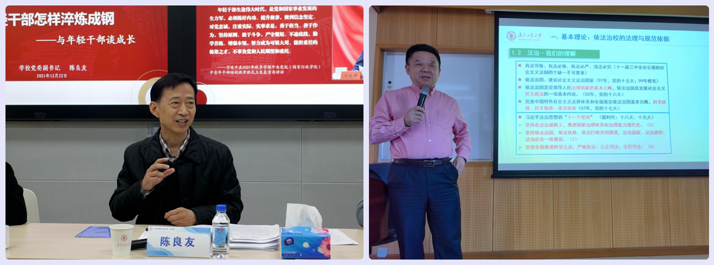 揭阳校区党委常务副书记邱伟青,副书记、管委会常务副主任陈晖的专题党课《忠诚担当,创新实干,推动揭阳校区高质量建设》