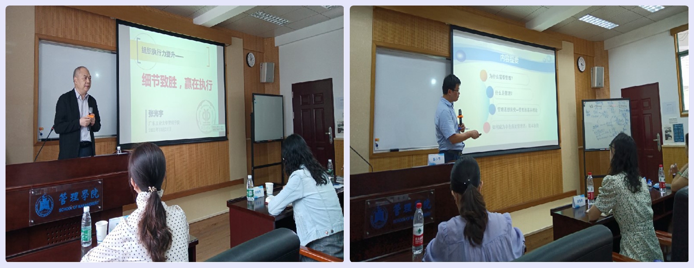 此次提升班于9月启动,共有来自学校各部门、单位的33名科级干部参训,具有广泛的代表性。聚焦“政治能力”和“专业能力”,共开设11次单元课程,其中理论课程8次、专题党课1次、学习体验与实践课程1次、主题研讨1次。课程主题鲜明、紧跟形势、内容丰富;师资阵容强大、来源多元,既有校领导、中层干部,也有来自管理学院、马克思主义学院专业教师。