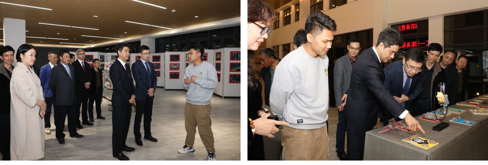 参观展览活动的嘉宾仔细观看每一件展览作品,认真听取作品讲解,不时驻足观看。现场嘉宾表示,这次展览非常有意义,不仅推广了惠来本地的传统文化,也为当地学生提供了更大的展示平台,有利于推动当地的美育教学,增进学生对本地民间技艺的了解,让更多的年轻人走进非遗文化世界与心系故乡发展,传承传统优秀文化。