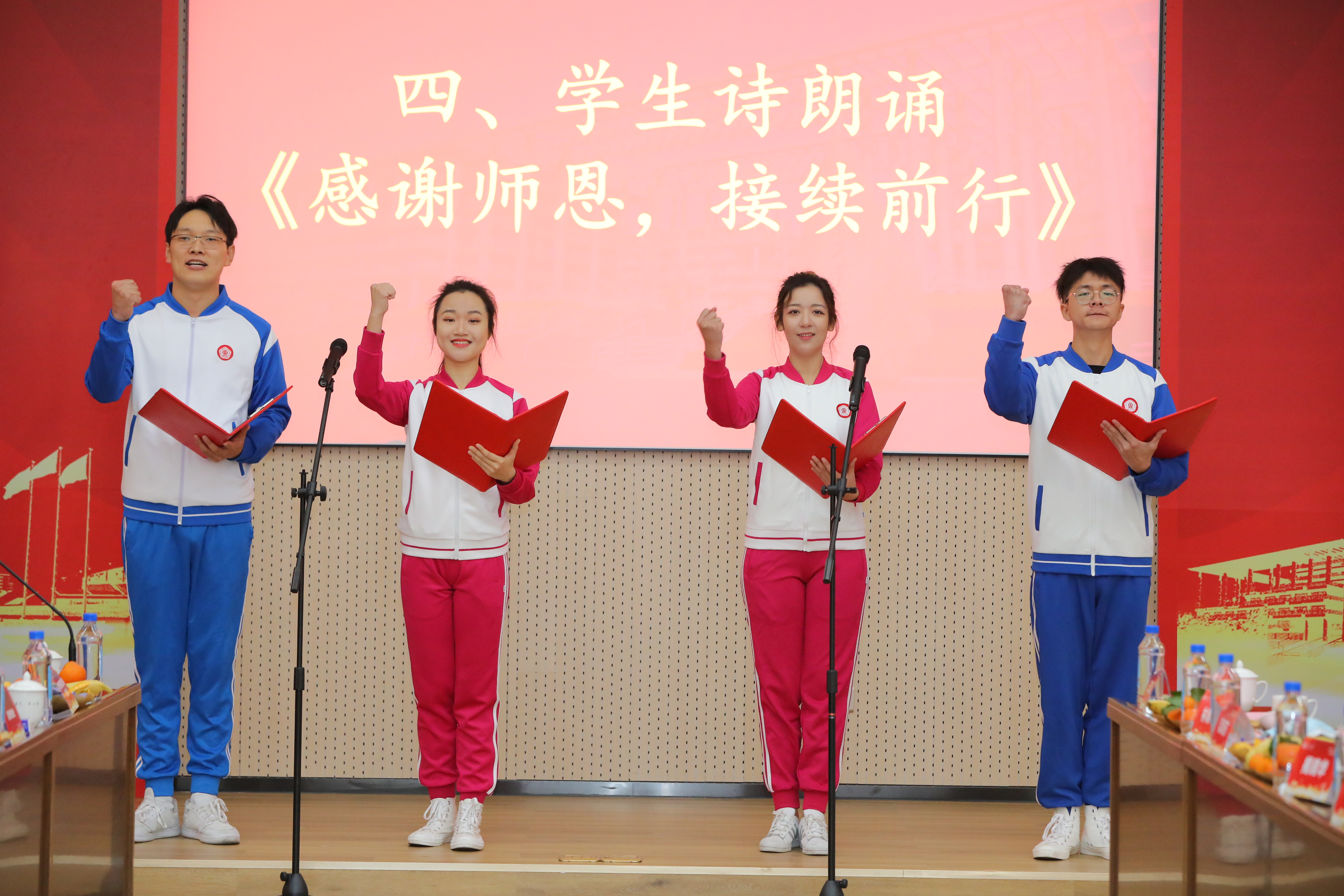 “放飞青春梦想,做明天的时代楷模、大国工匠。厚植家国情怀,把牢奋斗奋进的青春航向。新征程上,牢记您的教诲。勇于担当,奔赴远方!”学生代表们以题为《感谢师恩,接续前行》的原创诗朗诵向荣休教职工表示真挚的感谢和崇高的敬意。