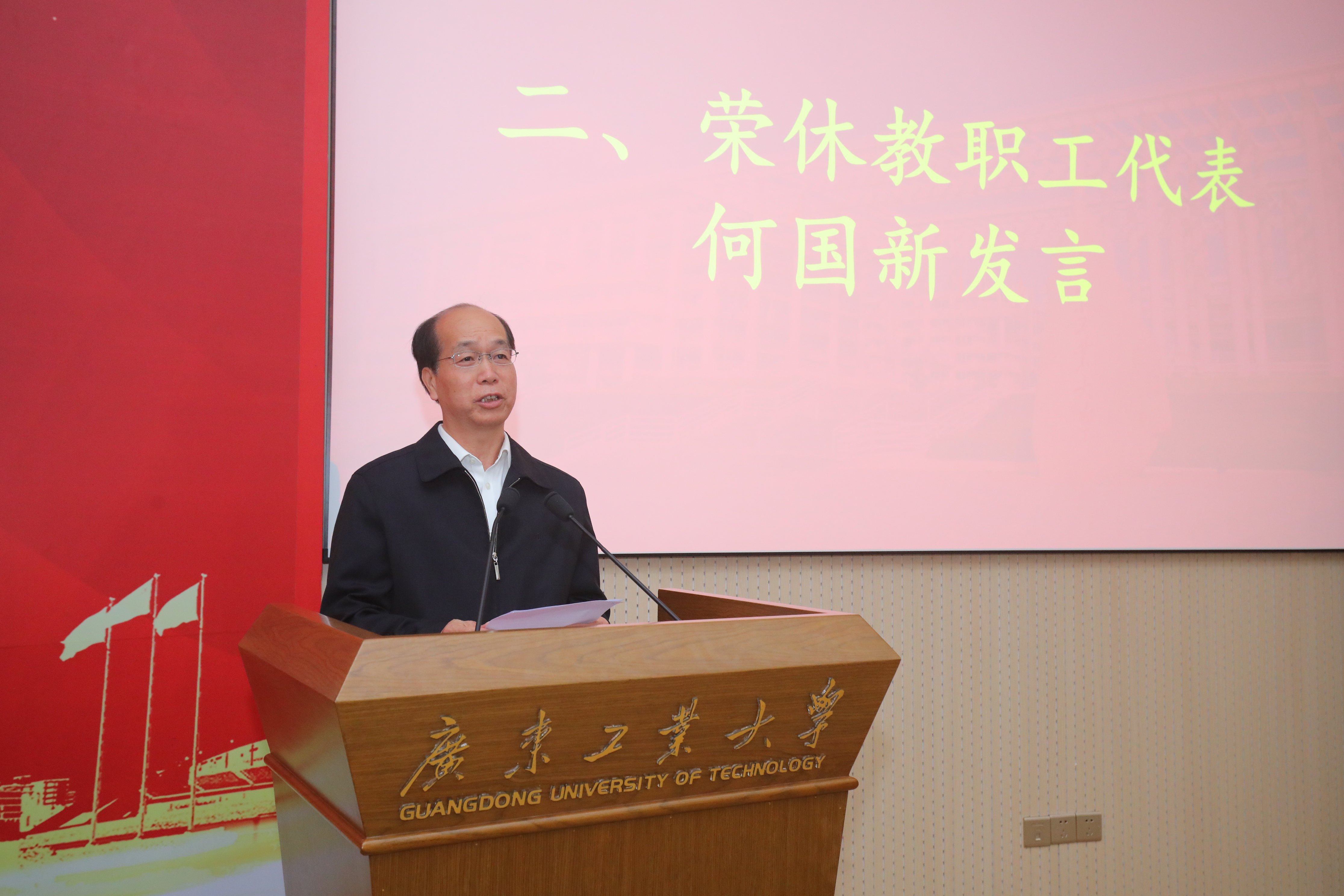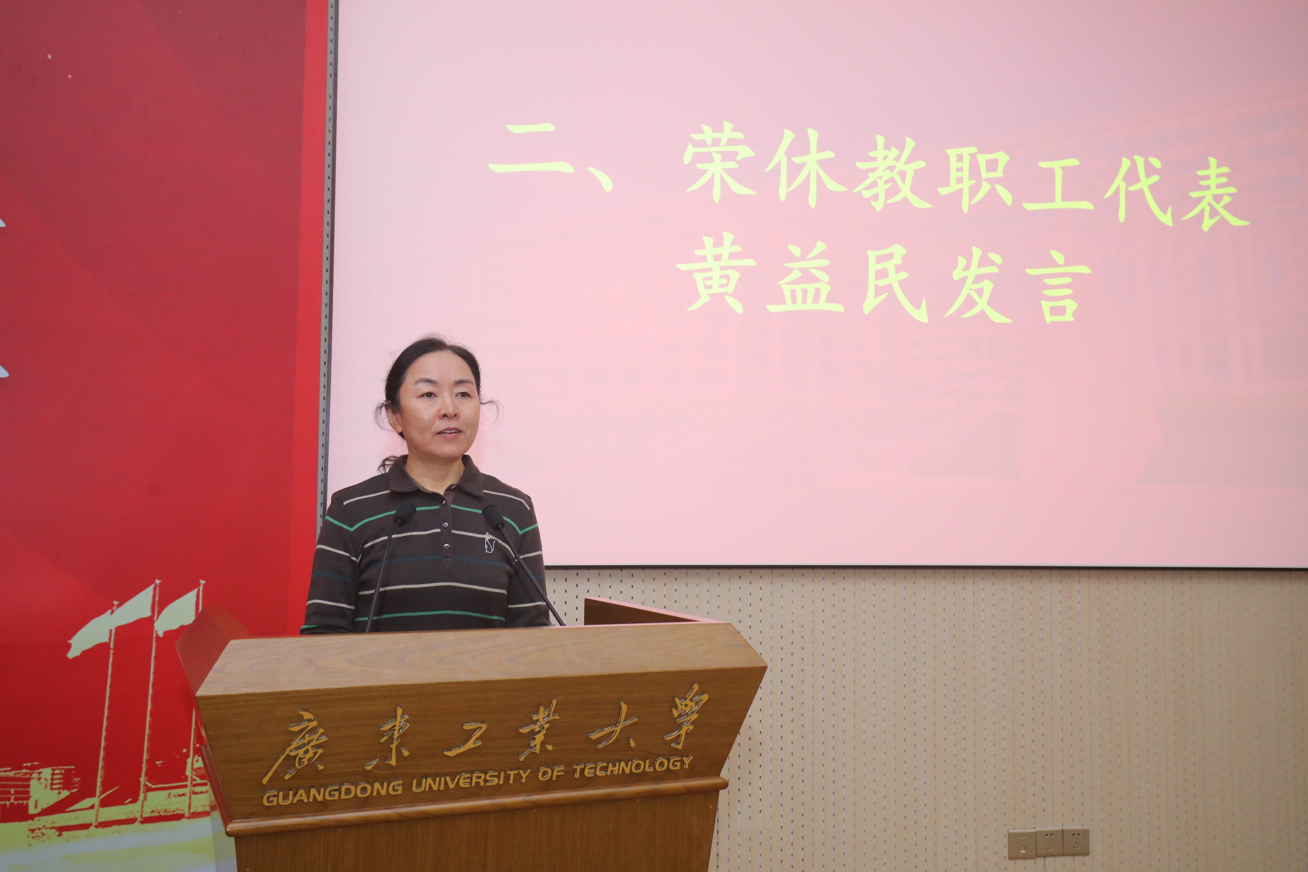 仪式由学校党委常委、副校长栾天罡主持。他勉励在职教职工要以荣休教职工为榜样,忠诚党的教育事业,切实履行教书育人职责,立德树人,广工精神薪火相传。