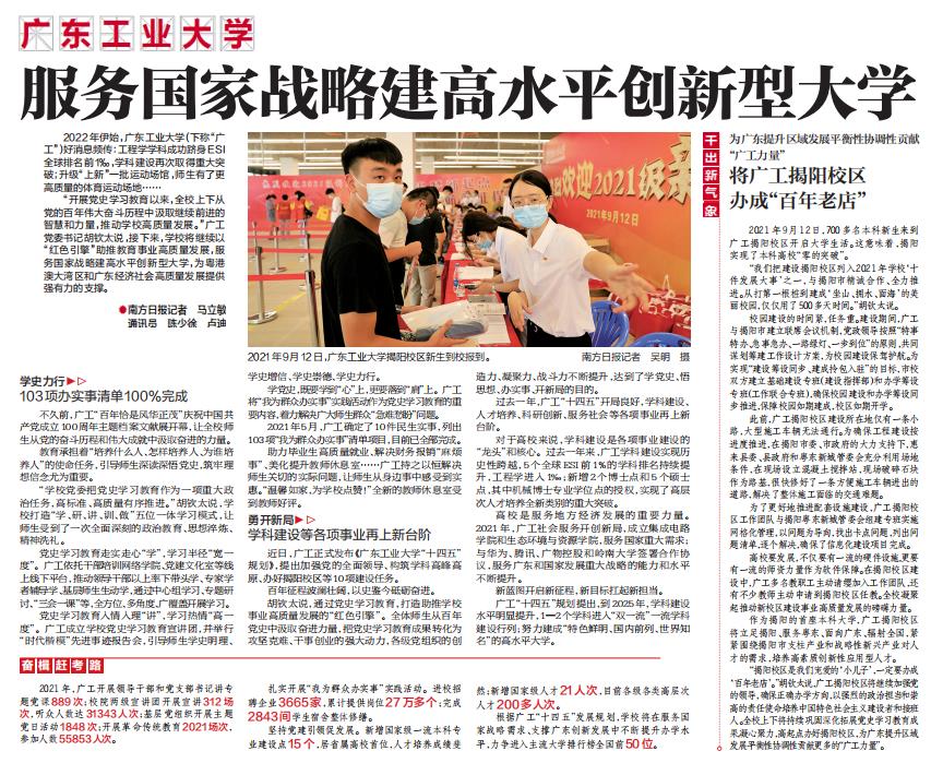 2月7日,南方日报、南方+推出《“笃行·新局”》特别报道,其中在第ET14版展示广工深入开展党史学习教育,服务国家战略建高水平创新型大学的作为和担当。报道内容如下: