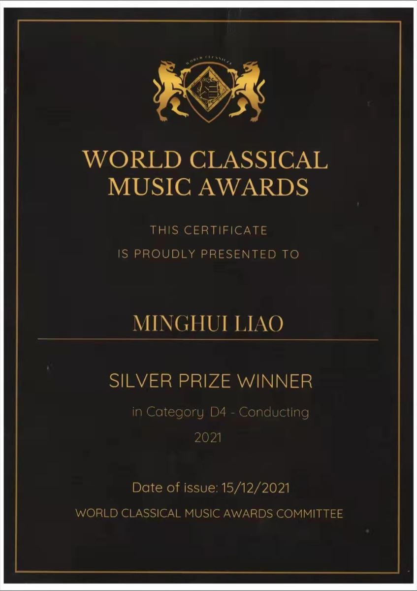 2021年英国世界古典音乐大奖结果于近期揭晓。通识教育中心教师廖鸣辉获指挥组银奖。廖鸣辉是广工交响管乐团指挥,至今带领广工交响管乐团获省级比赛一等奖12项,国家级比赛3项,主讲“交响管乐合奏”“室内乐演奏”等课程。兢兢业业从事指挥演出和专业教学,全力在学生中为播撒音乐的种子而“挥棒”。