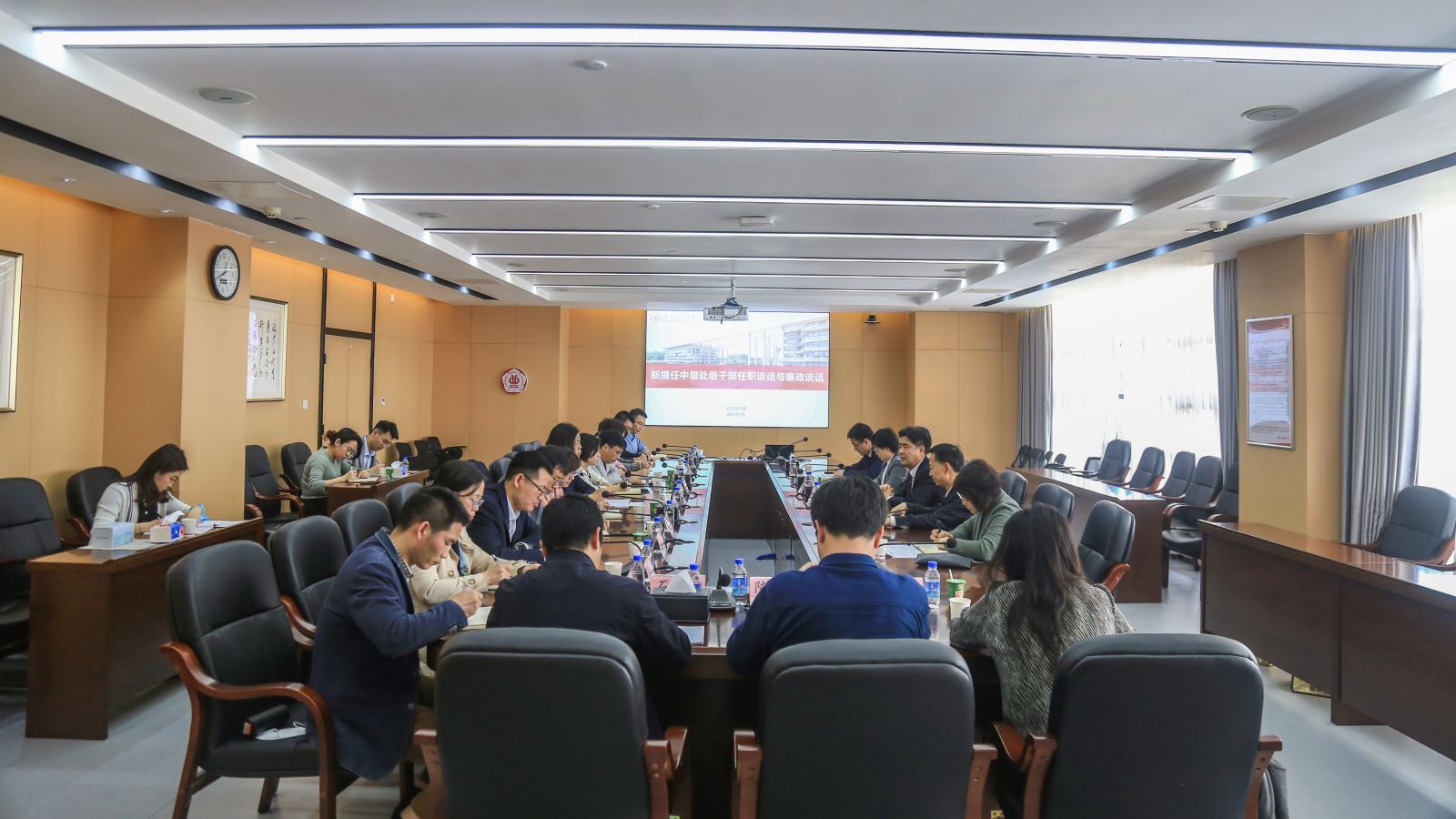 3月3日上午,学校新提任中层干部任职谈话与廉政谈话会议在大学城校区行政楼702会议室举行。学校党委书记胡钦太,党委副书记陈良友,党委副书记、纪委书记、广东省监委驻安博app最新版下载监察专员熊静与新提任的15名中层干部进行了集体谈话。会议由党委常委,组织部、统战部部长李靖茂主持。