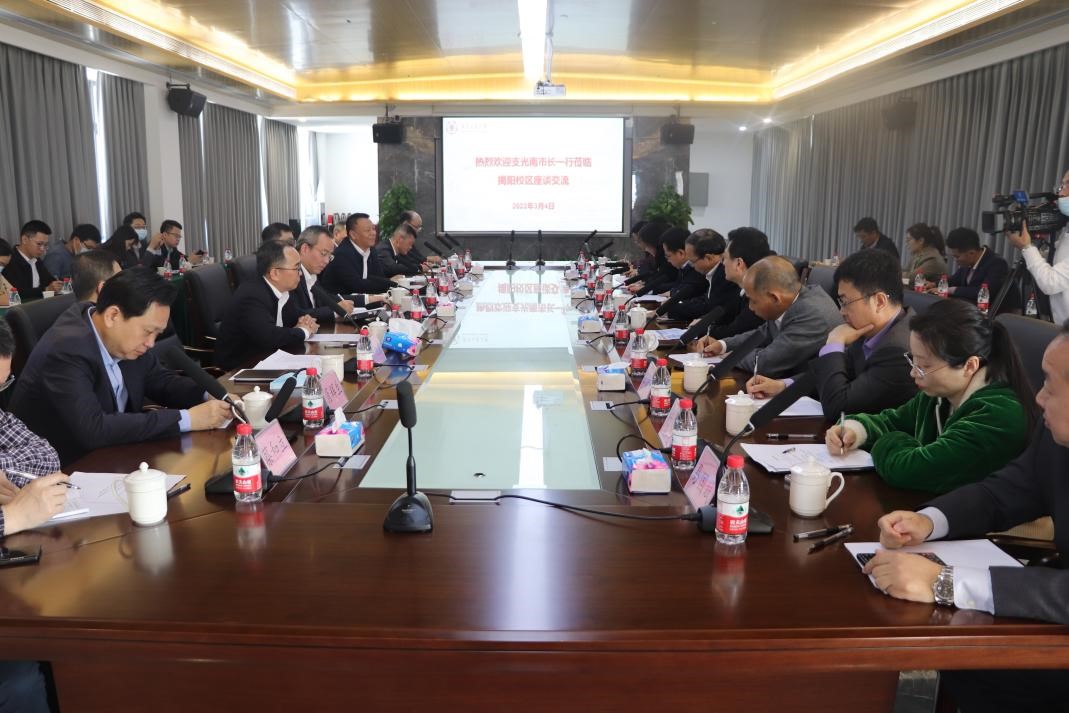 3月3日至4日,校长邱学青、副校长栾天罡一行前往揭阳校区推动办学工作。期间,邱学青与揭阳市委副书记,揭阳市人民政府党组书记、市长支光南座谈,交流揭阳校区办学情况及下一步工作计划,会商揭阳校区办学资金、榕江实验室迁建等事宜;与中国石油广东石化公司总经理周健一行座谈,洽谈加强产学研合作和人才联合培养等事项;与学校榕江实验室迁建工作团队和校区教学系部主任交流,指导实验室建设和教学科研工作。