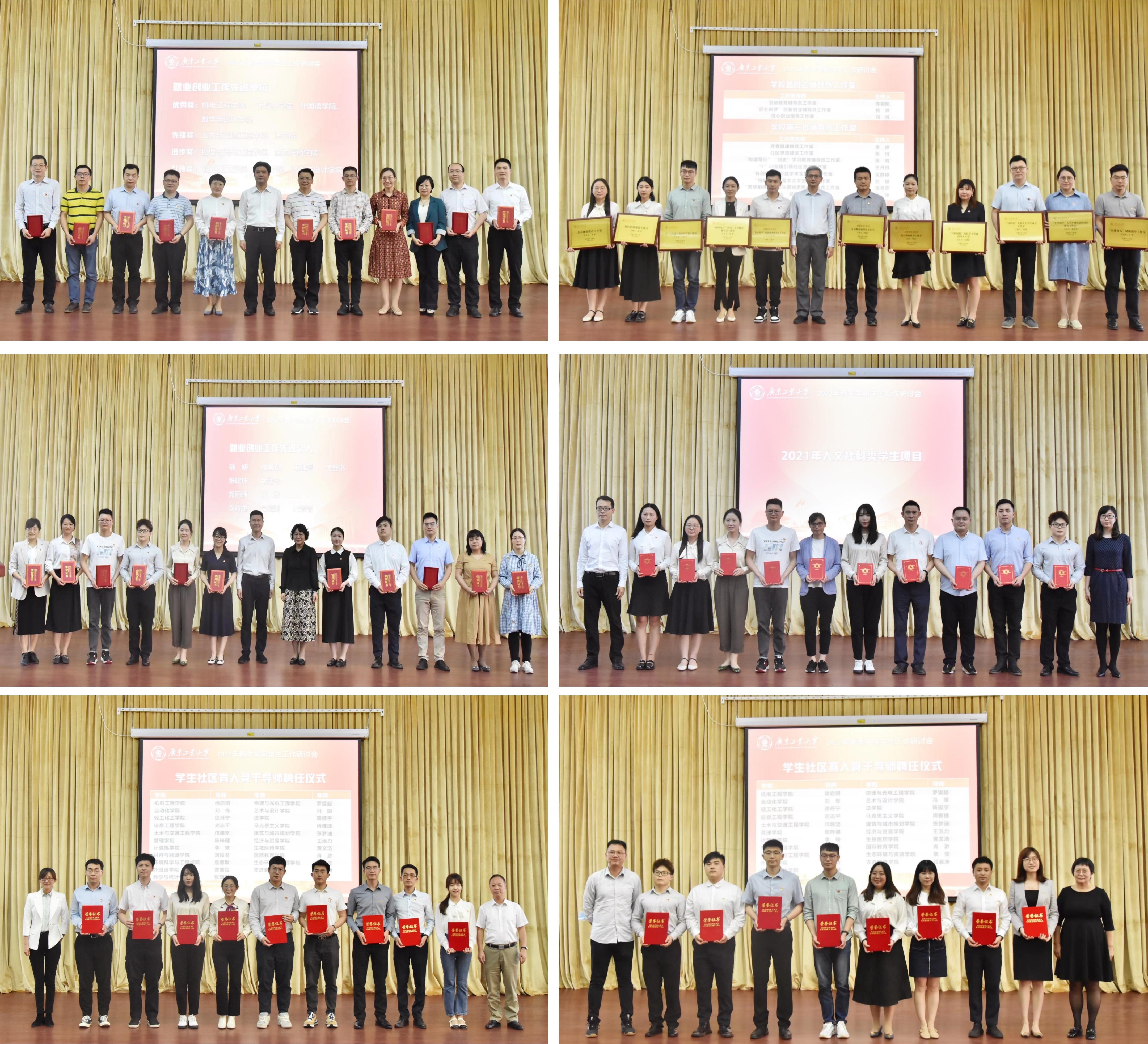 在授牌颁奖环节,学校对2021届毕业生就业创业工作先进单位和先进个人、学校首批名辅导员工作室和第三批辅导员工作室、学校社区育人骨干导师、学校2021年人文社科类学生项目指导老师进行了颁奖或授牌。