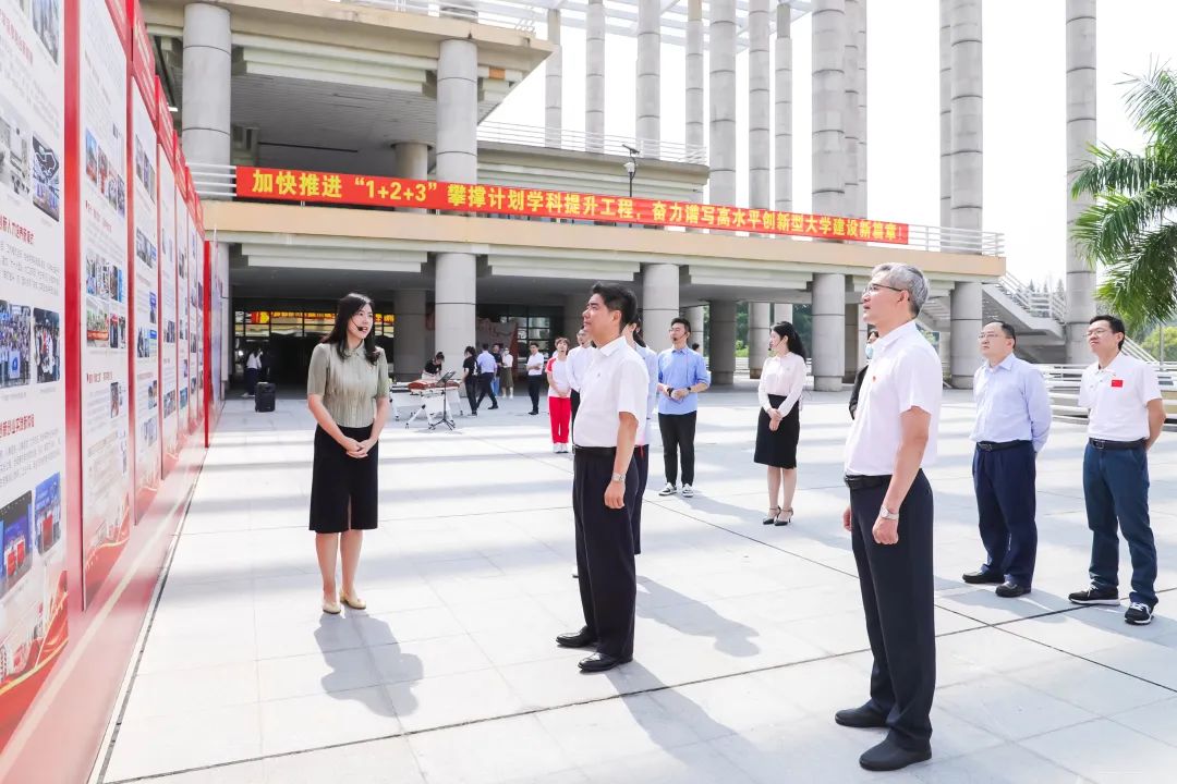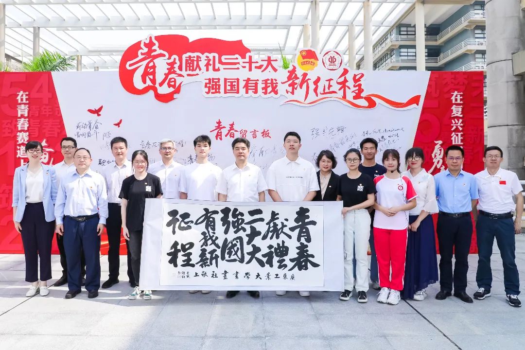为迎接党的二十大胜利召开,庆祝中国共产主义青年团成立100周年,引领广大团员青年继承和发扬五四精神,5月5日上午,学校在大学城校区组织开展“青春献礼二十大,强国有我新征程”主题活动。学校党委书记胡钦太,党委常委、副校长陈卓武,党委常委、组织部部长李靖茂,党委常委、宣传部部长张育广,党委办公室、校长办公室,党委学生工作部,校团委,研究生院,体育部等部门主要负责人出席活动。各学院团委书记,中国大学生自强之星,广东青年五四奖章(提名奖)、“两红两优”荣誉称号获得者,学校“十佳百优”荣誉称号获得者等参加活动。