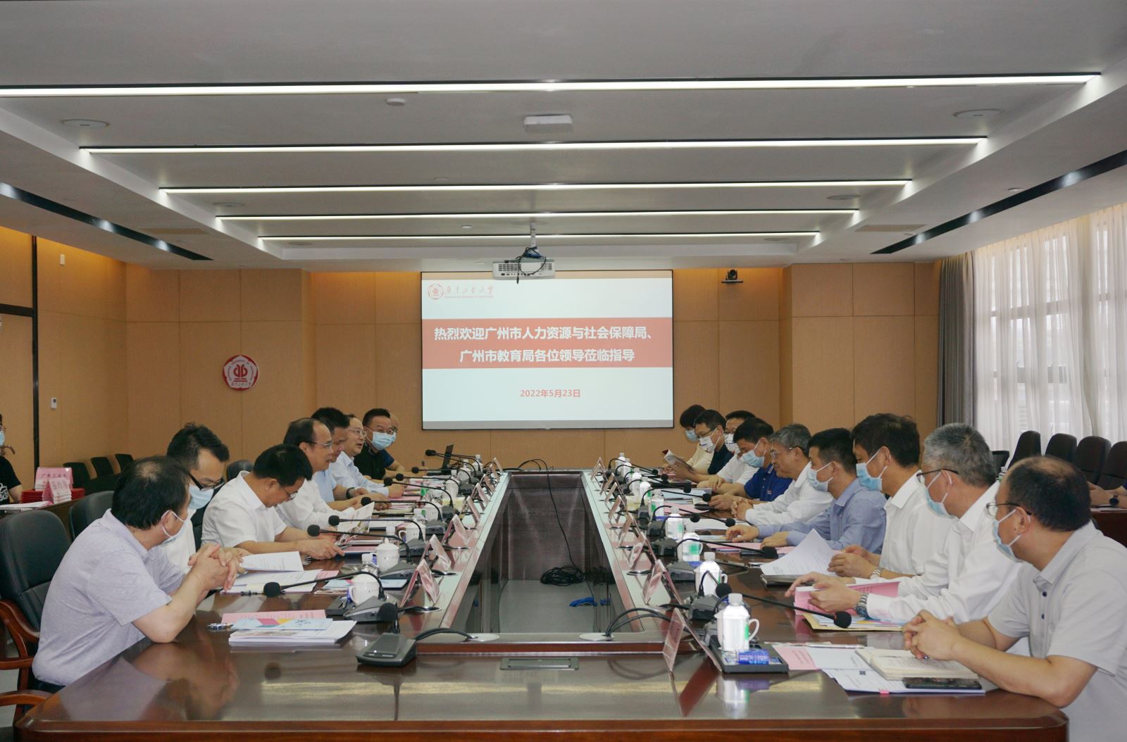 5月23日下午,广州市人力资源和社会保障局、广州市教育局与安博app最新版下载联合培养研究生签约仪式在大学城校区行政楼702会议室举行。广州市人力资源和社会保障局党组书记、局长王健,副局长何士林,一级调研员张胜年,广州市教育局一级调研员林平,学校党委副书记、校长邱学青,广州市人力资源和社会保障局、广州市教育局有关职能部门负责人,学校党委办公室、校长办公室、研究生院、党委研究生工作部、人事处等相关部门主要负责人出席。签约仪式由学校党委常委、副校长杜承铭主持。