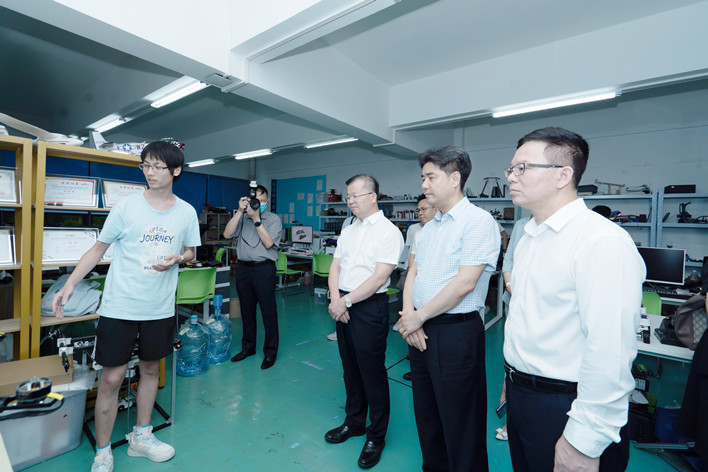 交流会前,学校党委书记胡钦太在行政楼707会议室会见了来宾,并于交流会后陪同林昭远一行参观了学校精密制造技术与装备实验室、工大创谷。