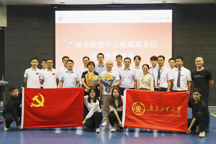 随后,举办了防疫专题讲座。张周斌介绍了当前疫情防控的形势以及广州面对疫情采取的措施、取得的成效,介绍了广工师生在疫情防控的担当作为和所做的贡献,提出了进一步做好疫情防控的注意事项和具体要求,给师生们上了一堂生动深刻,极具教育意义的抗疫大思政课。他鼓励同学们积极学以致用,将来为社会作出应有贡献。