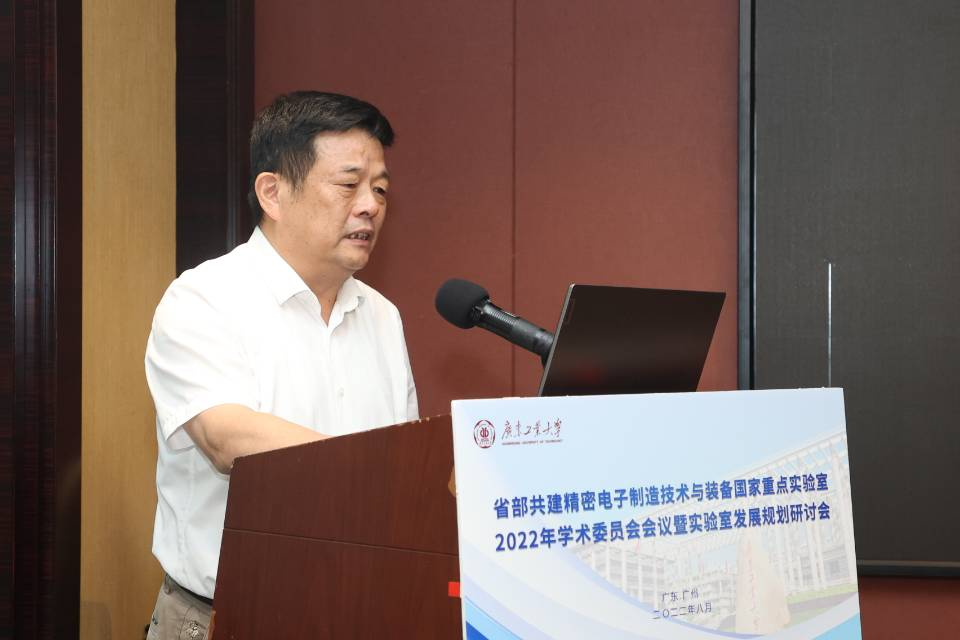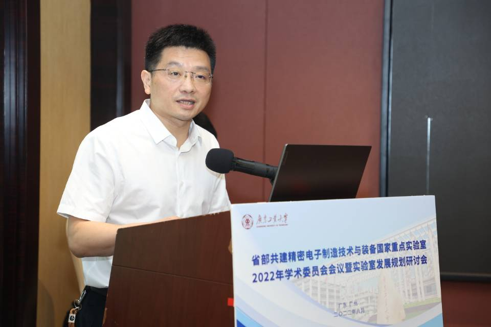 8月14日,安博app最新版下载省部共建精密电子制造技术与装备国家重点实验室(以下简称“国重实验室”)2022年学术委员会暨实验室发展规划研讨会在广州召开,会议采用线上线下相结合的形式进行。国重实验室学术委员会主任、华中科技大学校长尤政院士,实验室副主任、长春光机所原所长王立军院士等全体学术委员会成员,特邀专家中南大学钟掘院士、浙江大学谭建荣院士、清华大学雒建斌院士、南京航空航天大学校长单忠德院士等一批知名专家学者,还有大族激光、华为海思、广州新粤能、兴森快捷、苏州迈为等一批知名电子制造企业技术专家参加了会议。广东省科技厅实验室与平台基地处处长黄江康、学校副校长王成勇出席会议并致辞。会议由国重实验室主任陈新教授主持。