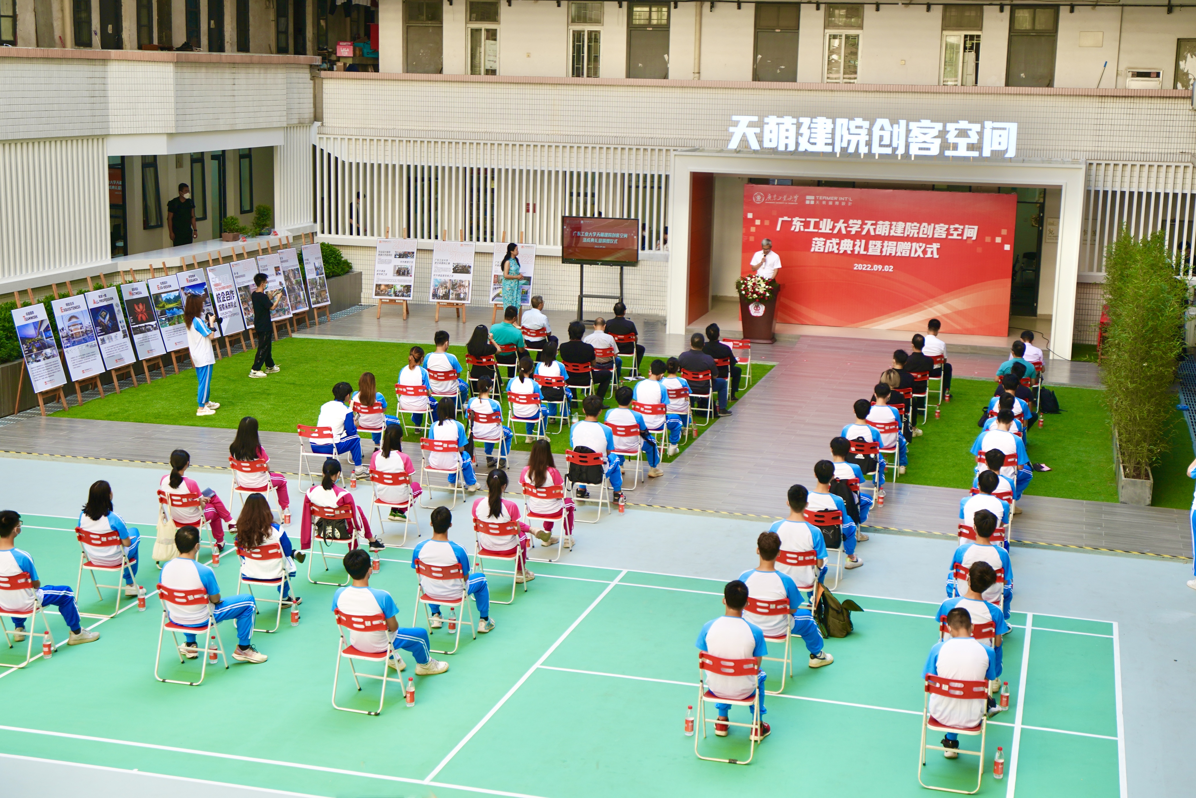 9月2日上午,天萌建院创客空间落成典礼暨捐赠仪式在东风路校区举行。学校党委常委、副校长陈卓武,学校党委常委、宣传部部长张育广,后勤管理处、对外联络与校友事务办公室、创新创业学院、建筑与城市规划学院等单位负责人。广州天萌建筑设计有限公司董事长陈宏良,总裁颜家国,以及广工师生代表出席典礼。