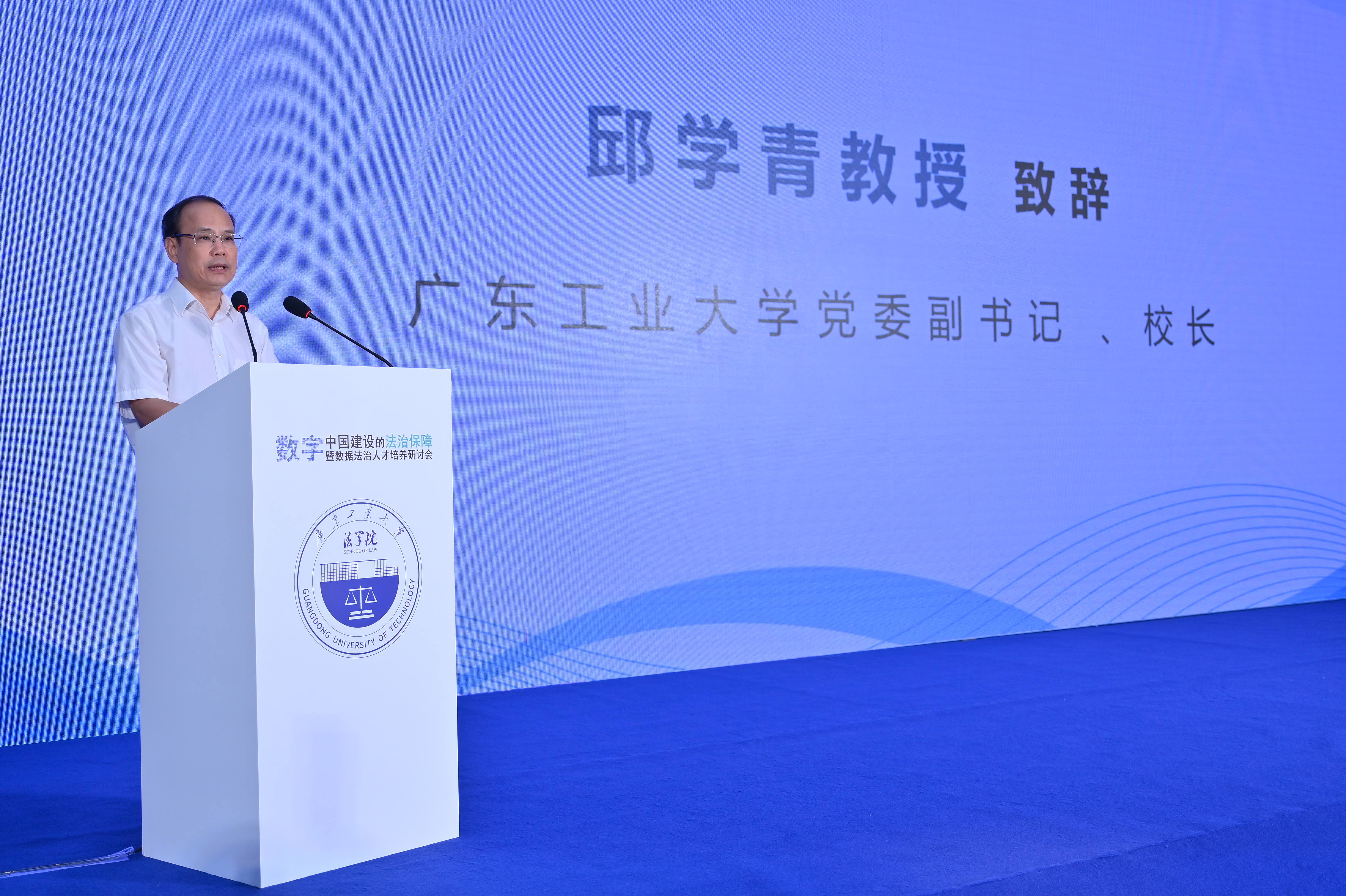 邱学青在致辞中代表学校向各位领导和专家学者的到来表示热烈欢迎。他介绍了学校的概况,肯定了法学院近年取得的明显进步。他认为,此次研讨会深入探讨数字经济、数据治理和数据法治人才培养等问题,具有重要的学术价值和实践意义。希望各位专家学者为广工法学学科的发展把脉开方、指点迷津,助力广工法学院高质量发展。