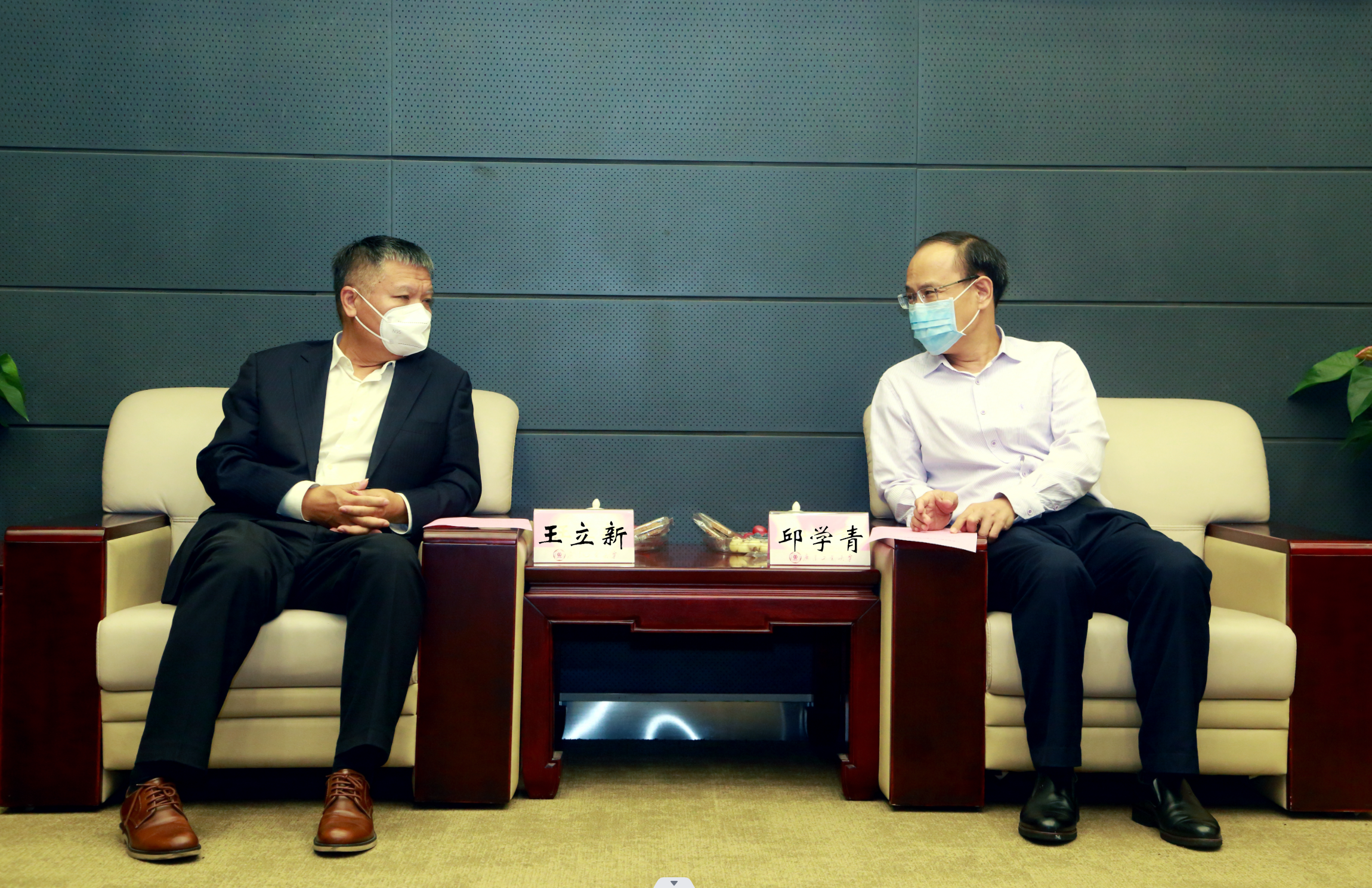 11月9日下午,受杨志峰院士邀请,广东省水利厅党组书记、厅长王立新一行率队来到安博app最新版下载,校长邱学青在大讲堂二楼会见王立新一行。双方围绕生态环境治理、创新人才培养、人才对接及校地合作新模式等方面展开了深入交流与研讨。随行还有广东省水利厅水资源管理处处长陈小文,水利水电科学研究院党委书记黄本胜,水利厅科技与交流合作处调研员朱继文,水利厅人事处、水利水电科学研究院水利规划发展研究中心等相关部门负责人。国家重点实验室主任陈新教授,副校长栾天罡教授,党委办公室、校长办公室,发展规划处,生态环境与资源学院等相关部门负责人出席会议。