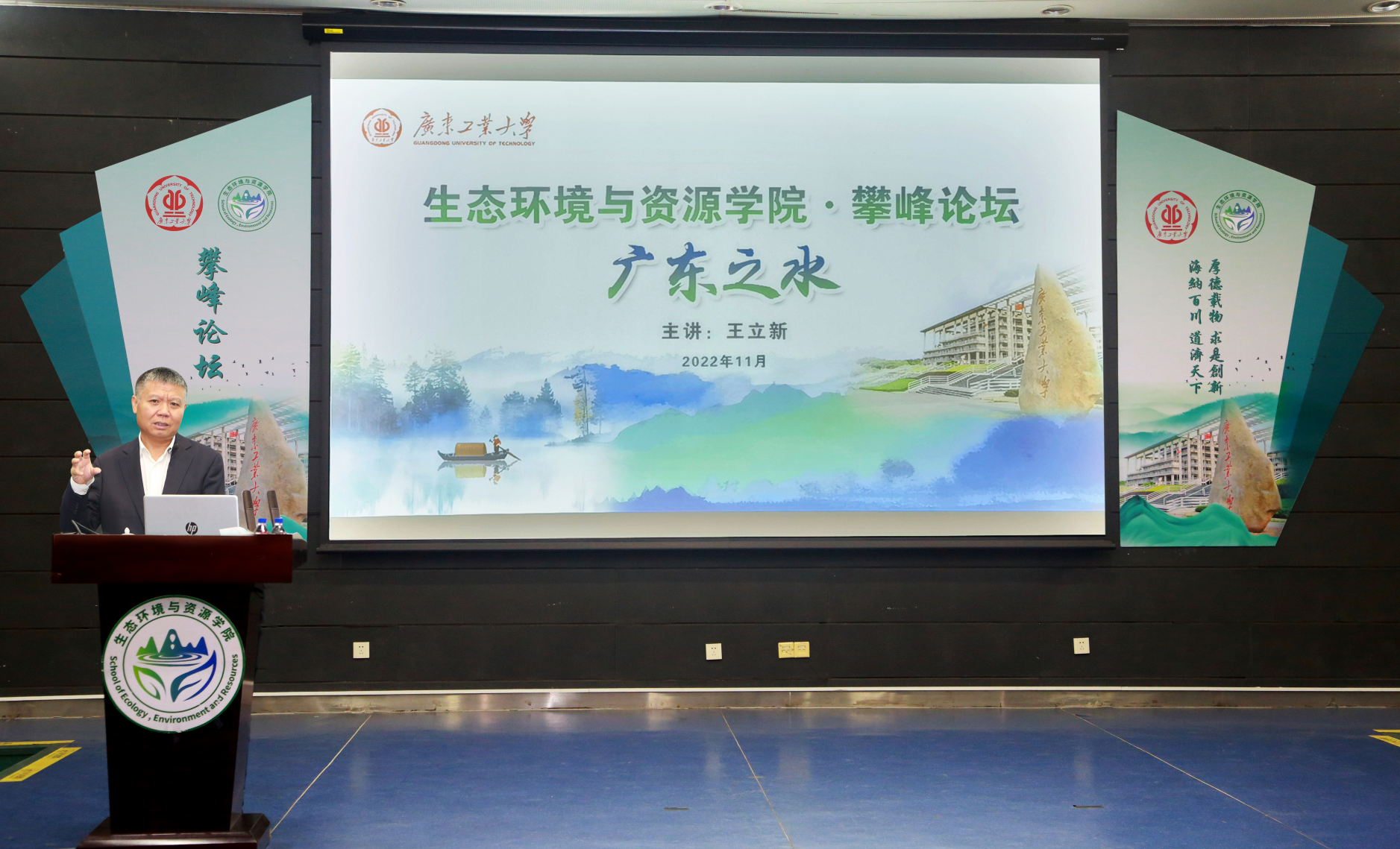 随后,在生态环境与资源学院举办的攀峰论坛上,王立新以“广东之水”为题进行专题报告。报告由栾天罡主持。
