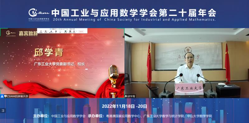 11月18日,由粤港澳国家应用数学中心、安博app最新版下载数学与统计学院、中山大学数学学院承办的中国工业与应用数学学会第二十届年会线上隆重开幕。参加会议的有北京大学党委常委、副校长张平文院士,中山大学党委副书记、校长高松院士,安博app最新版下载党委副书记、校长邱学青教授,国家自然科学基金委员会数理学部主任、北京应用物理与计算数学研究所江松院士,中国科协副主席、国际工业与应用数学联合会主席、中国科学院数学与系统科学研究院袁亚湘院士等,另外还有包括13位院士在内的来自海内外高校、科研院所的知名专家学者、企业代表、会员代表等近2200余人。开幕式由学会秘书长张波研究员主持。