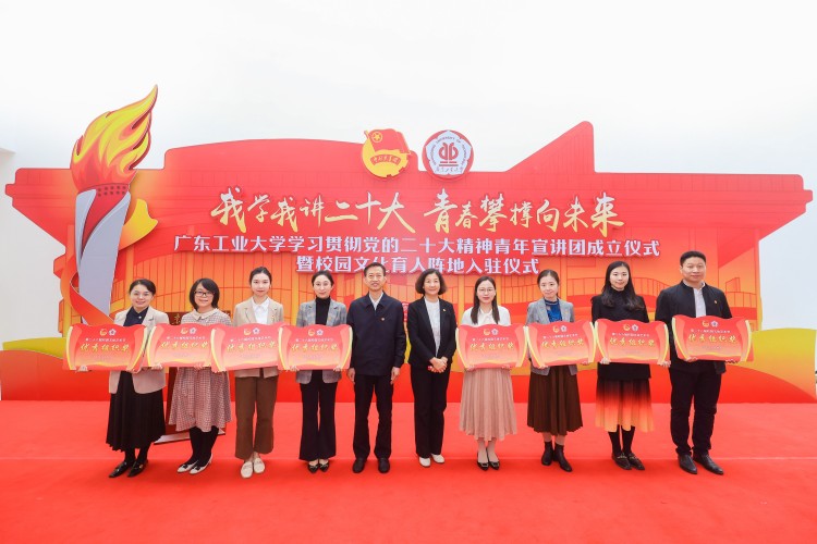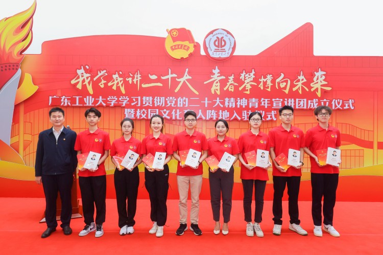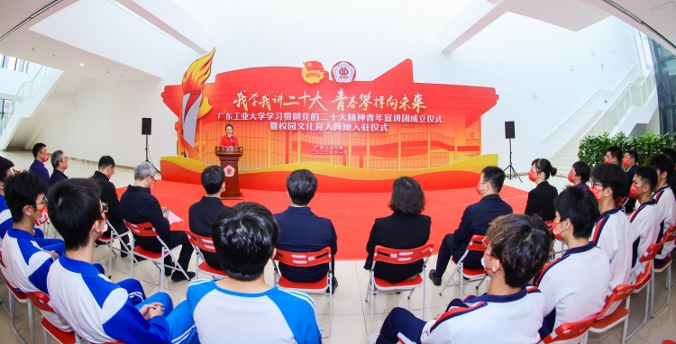 胡钦太对入驻文化活动中心的学生组织和学生社团表示祝贺,对为各校区学生活动中心建设修缮而付出辛勤劳动的老师和同学表示感谢。他在讲话中指出,近年来,校团委在学校党委的坚强领导下,在各方面取得了优异的成绩。同学们朝气蓬勃、斗志昂扬,在重大专项任务中勇挑重担,生动展现了新时代广工青年的自信自强、奋勇拼搏的良好风貌。广大师生要以文化活动中心的投入使用为契机,充分发挥校园环境的育人功能,有效激发出我校青年学生的思想共感、共情和共鸣。他还对青年宣讲团成员提出三点希望和要求:一是认真学习,站稳“听党话,跟党走”的宣讲立场。要严格遵循习近平总书记关于学习贯彻党的二十大精神“三个全面”和“五个牢牢把握”的明确要求,先学一步、学深一层,原原本本、原汁原味地吃透大会精神,切实把党的声音传播到全校师生的“最后一公里”;二是突出重点,明确“身边人,青年语”的宣讲目标。要把全校师生作为党的二十大精神宣讲的重点对象,扎实推进党的二十大精神进课堂、进活动、进头脑。既要讲好“青年话”、凸显“青年味”,又要避免青年学习的“低幼化”;三是发挥特长,讲求“能领会,可落实”的宣讲实效。要结合学科专业特长,集中精力开展专题宣讲,把党中央的决策部署讲深讲透讲到位,着力增强宣讲的说服力、亲和力和针对性、有效性,让广大师生听得懂、学得会、做得实。