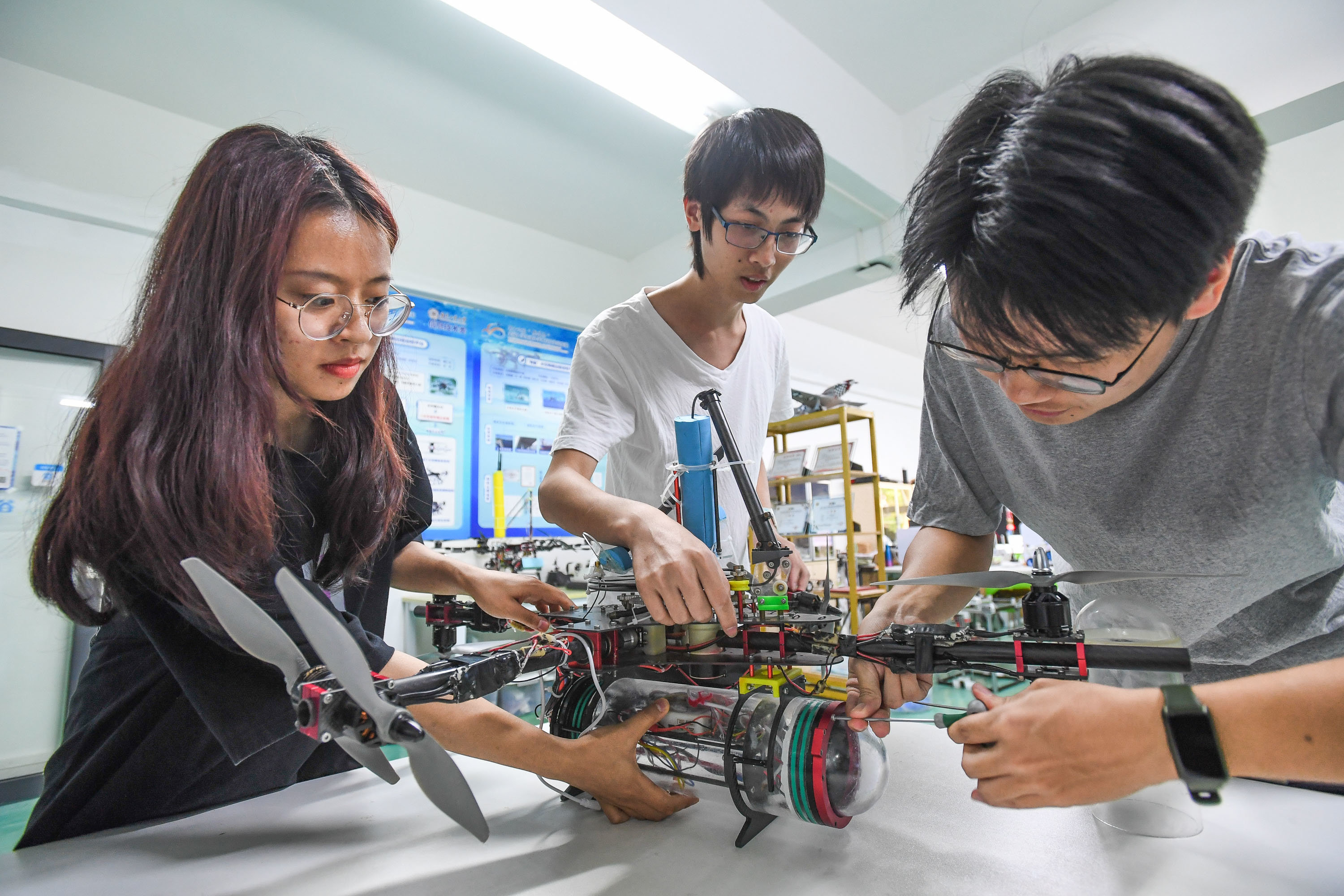 工大创谷学生团队研发空水两栖远程巡检平台