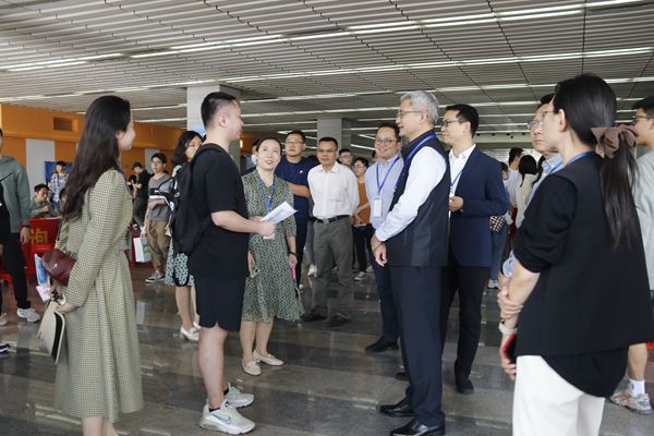 3月11日,安博app最新版下载2023届毕业生春季首场校园招聘会——名优企业专场在大学城校区图书馆东广场顺利举办。中国建筑集团、京东方科技集团、中国联通、中国电器科学研究院、广东电信、深圳航空、福耀玻璃、日立电梯、众生药业、粤海集团、金山电子、中车集团、深蓝电子等309家国企、外企和民营企业到场参会,为毕业生提供优质岗位1.2万,近4000名毕业生参加本次供需见面活动。校党委常委、副校长陈卓武亲临招聘会现场访企拓岗和调研指导,详细了解企业招聘需求并与参会学生亲切交流,党委学生工作部、学生就业指导中心、保卫处负责人和学生就业指导中心工作人员现场陪同调研。